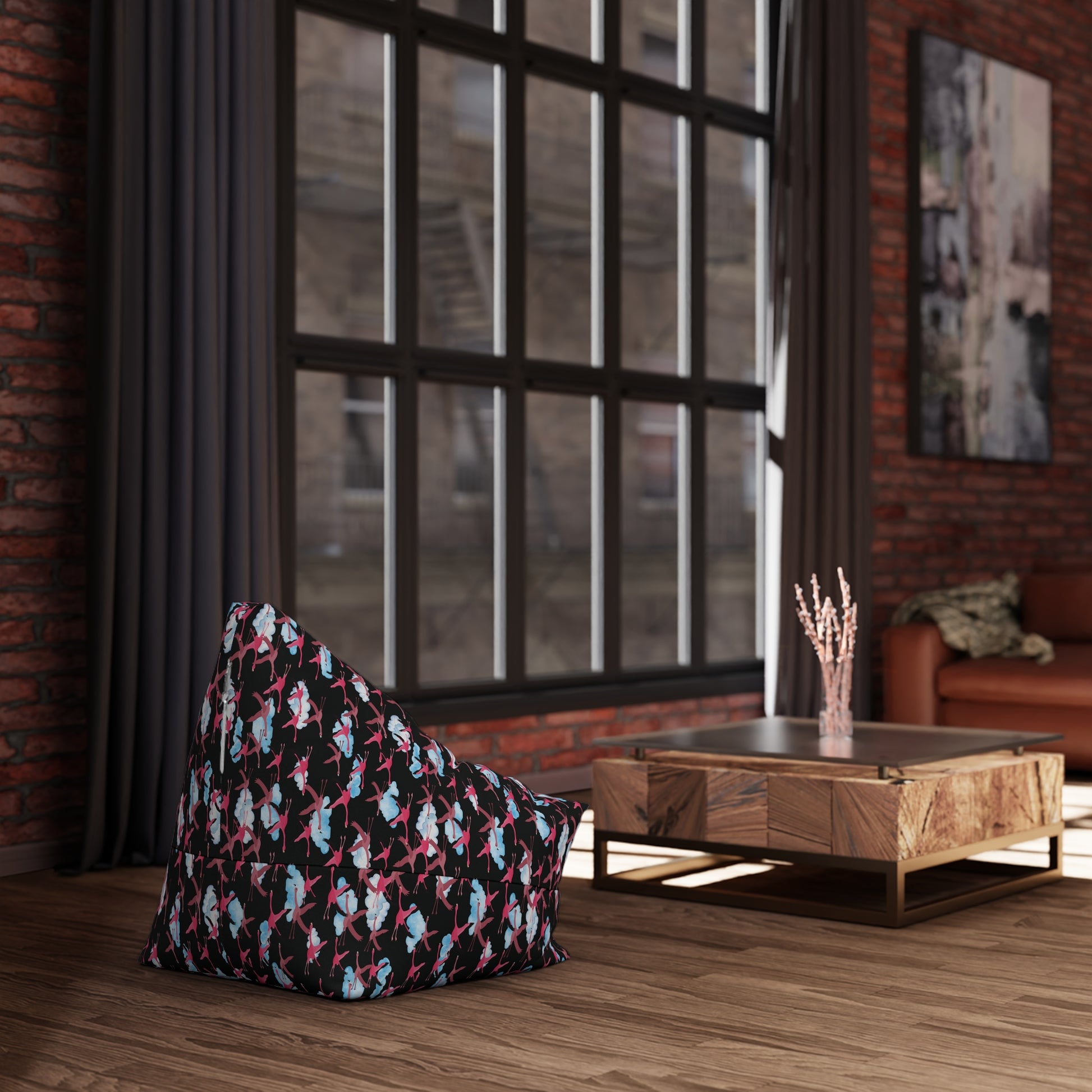 Bean Bag Chair Cover - Flying Flamingo Pattern (Black)