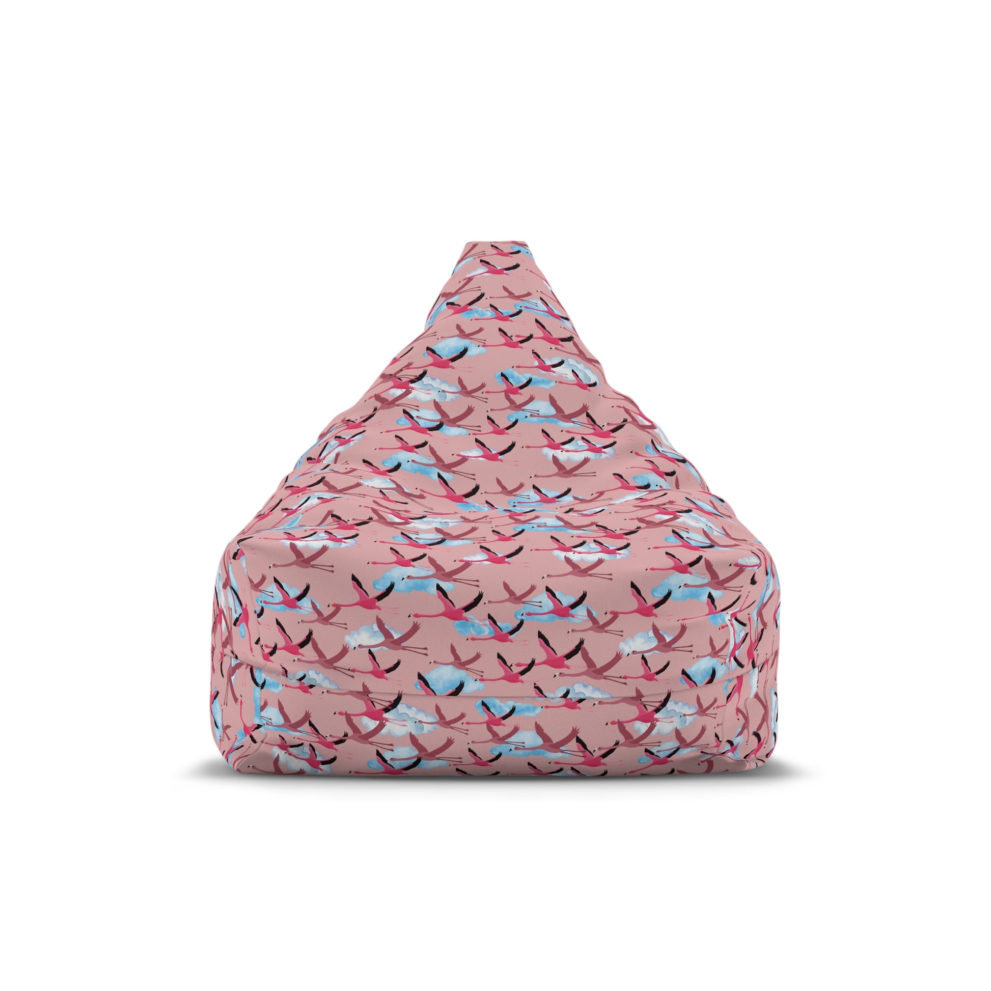 Flying Flamingo pattern bean bag chair cover for safari lovers. Perfect for adding a touch of wild style to any room. Ideal for those who love animals, birds and adventurous decor. Great for themed parties, safari enthusiasts, and animal lovers.