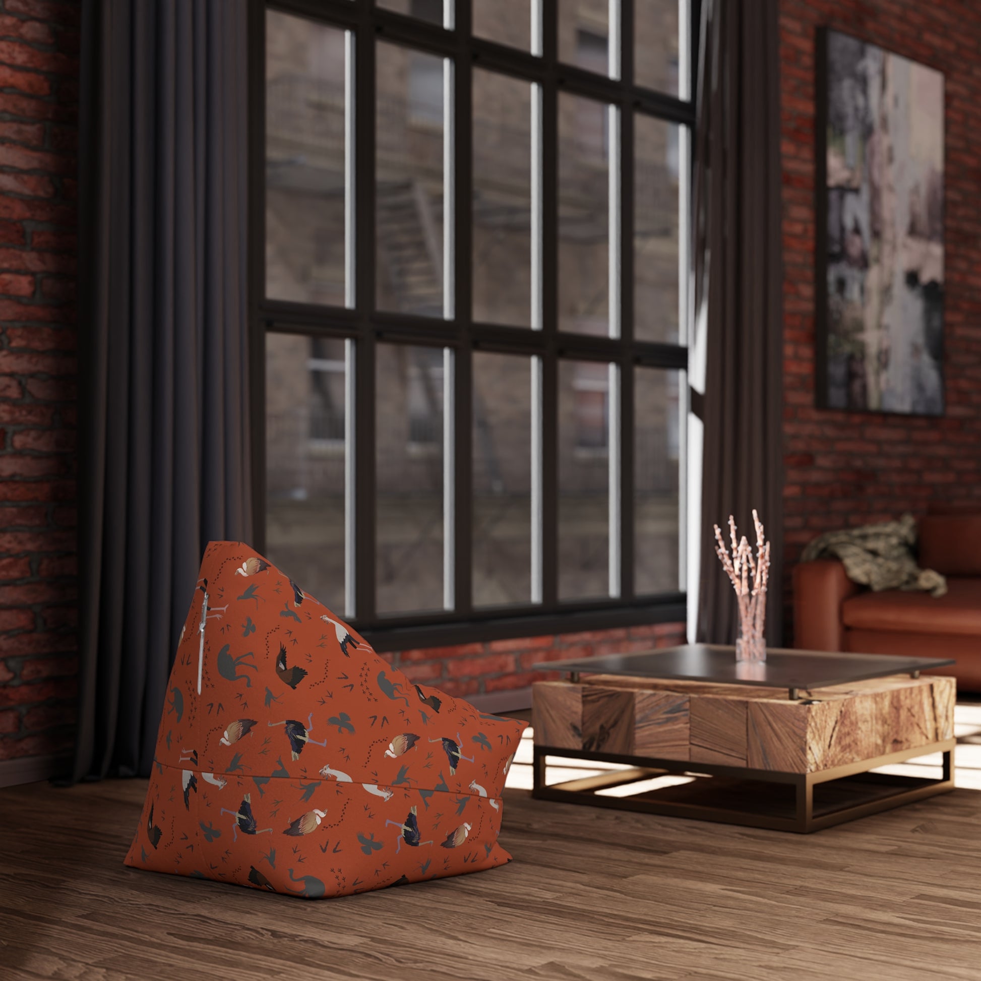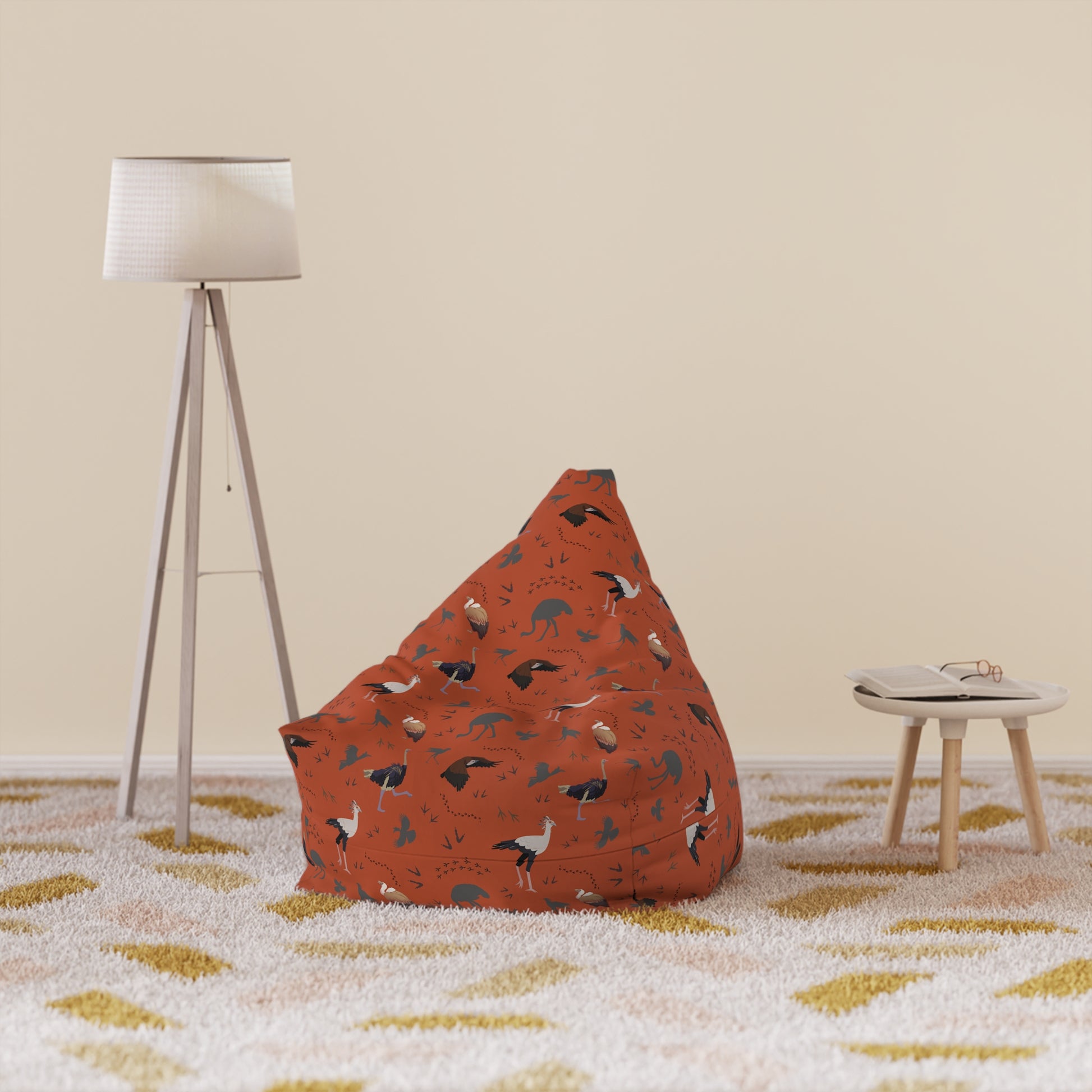 Safari Bird pattern bean bag chair cover for safari lovers. Perfect for adding a touch of wild style to any room. Ideal for those who love animals, birds and adventurous decor. Great for themed parties, safari enthusiasts, and animal lovers.