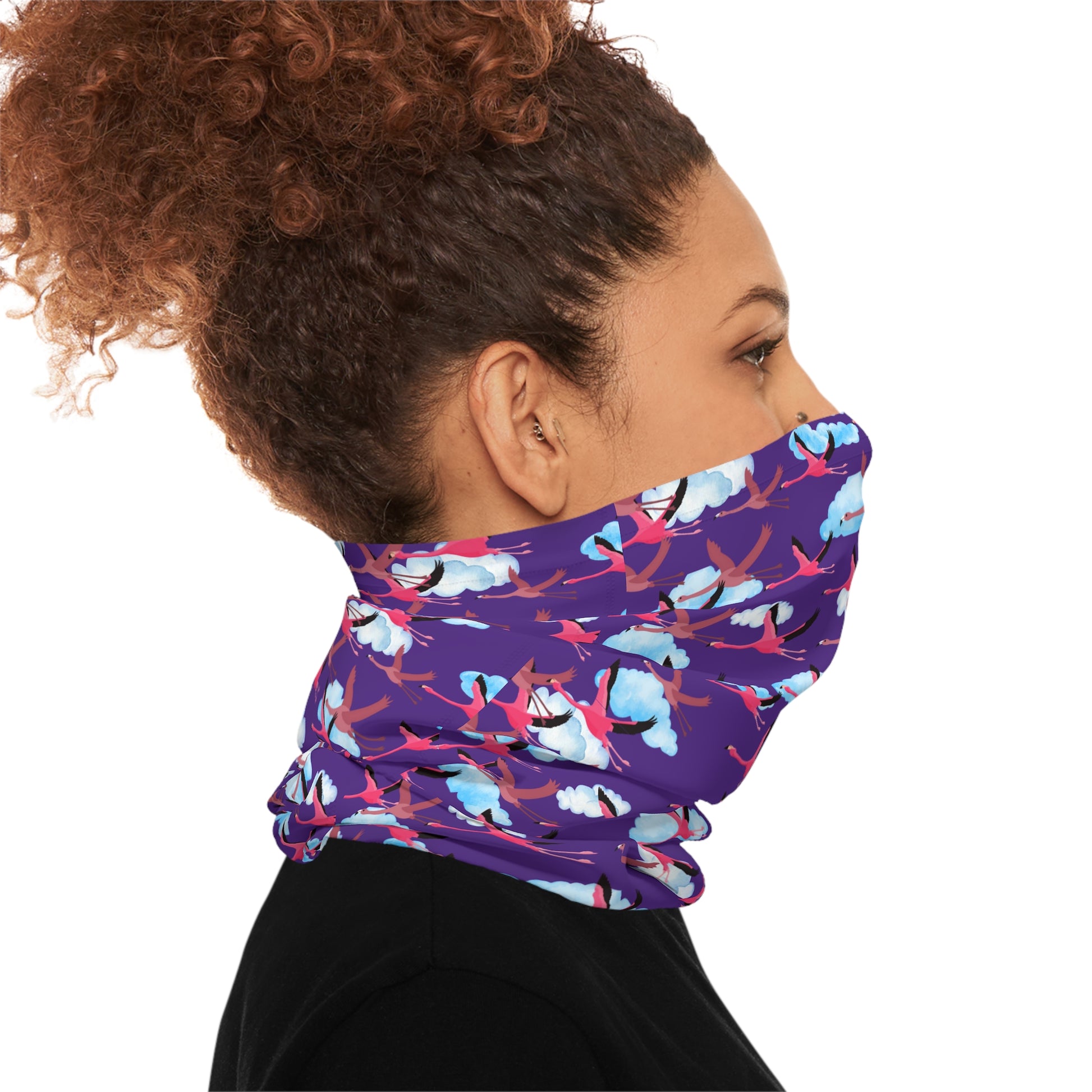 Colorful Lightweight Neck Gaiter with Flying Flamingo Design (Purple), Outdoor Accessory, Unique Gift, Hiking Gear, Nature-Themed Scarf