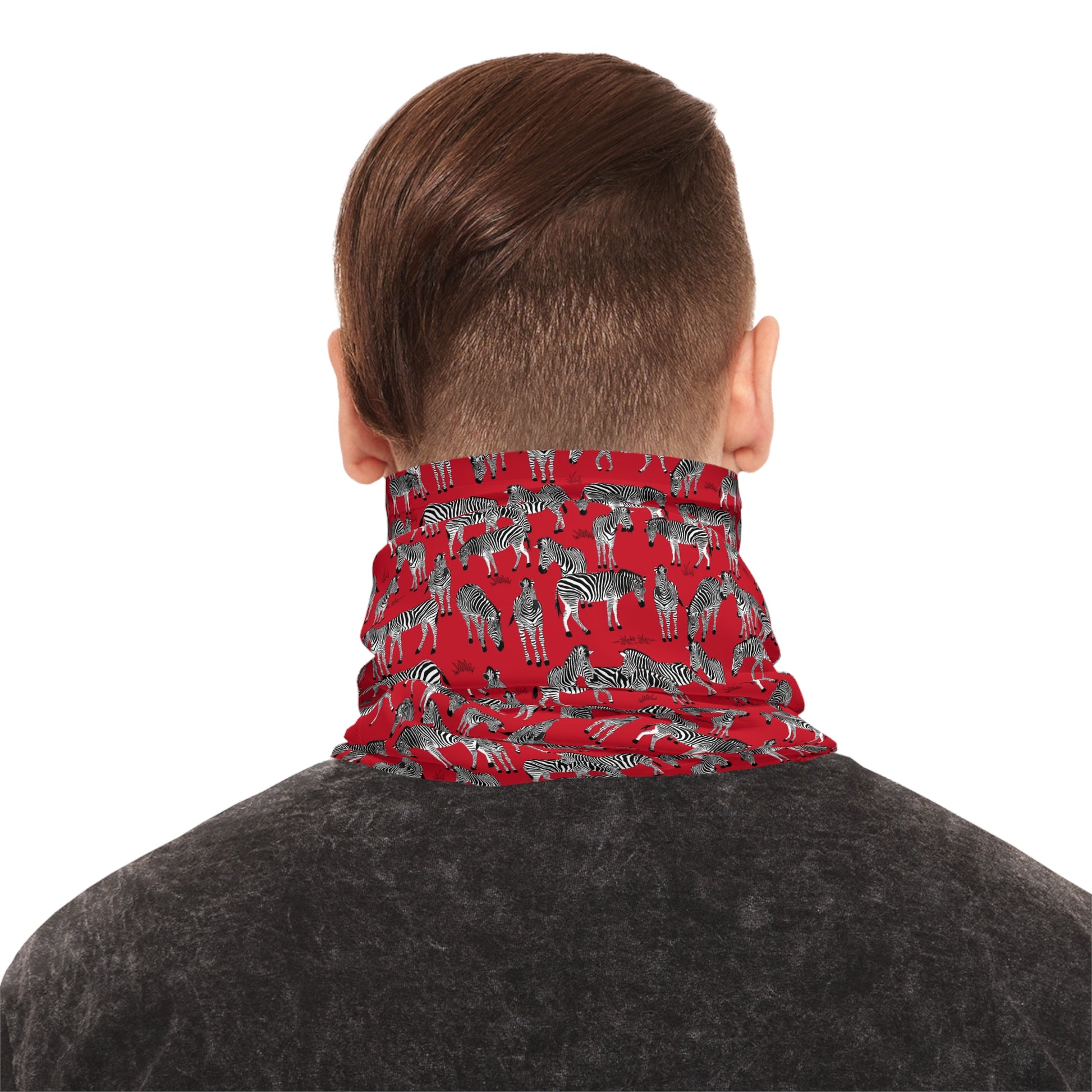 Colorful Lightweight Neck Gaiter with Zebra Herd Design (Red), Outdoor Accessory, Unique Gift, Hiking Gear, Nature-Themed Scarf