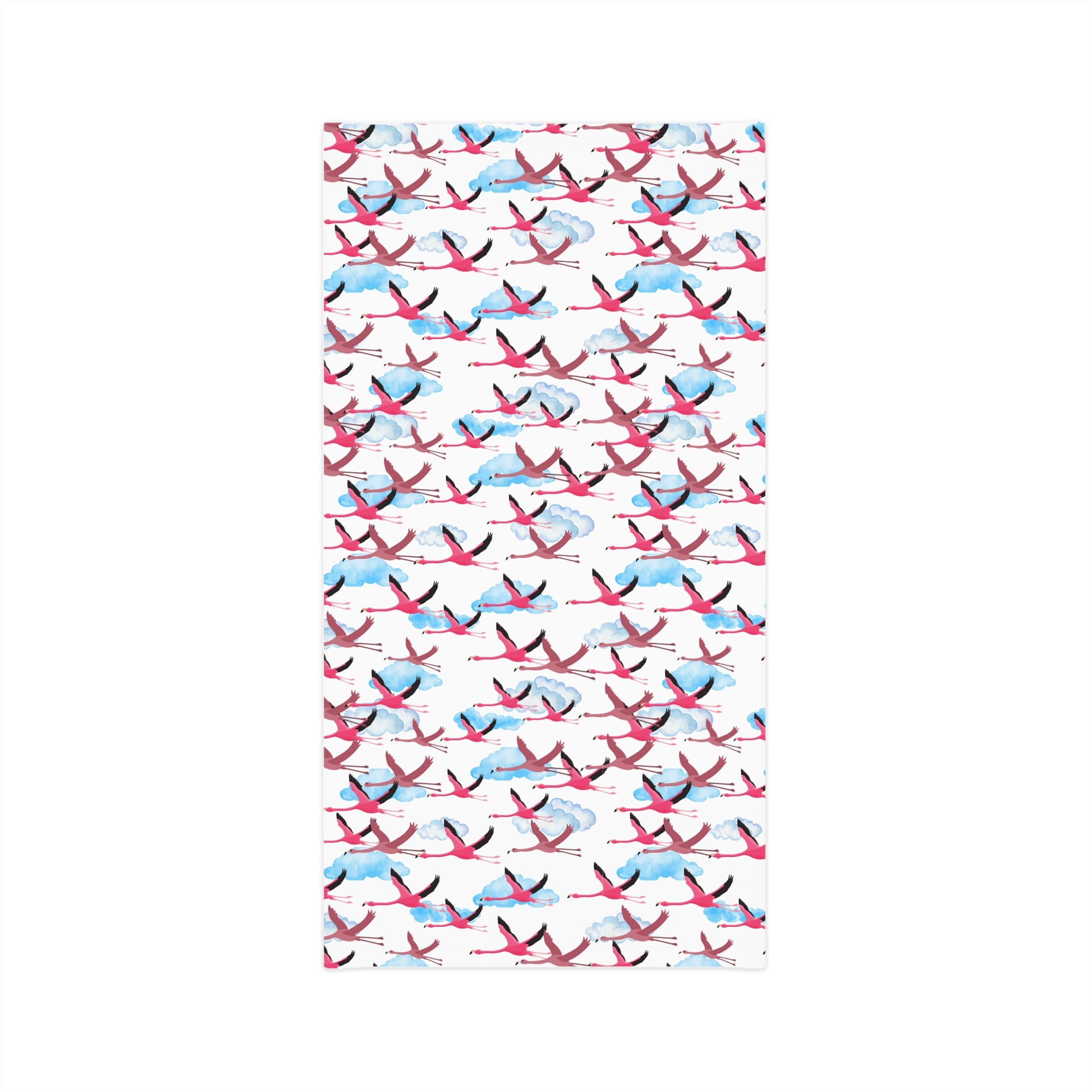 Colorful Lightweight Neck Gaiter with Flying Flamingo Design (White), Outdoor Accessory, Unique Gift, Hiking Gear, Nature-Themed Scarf
