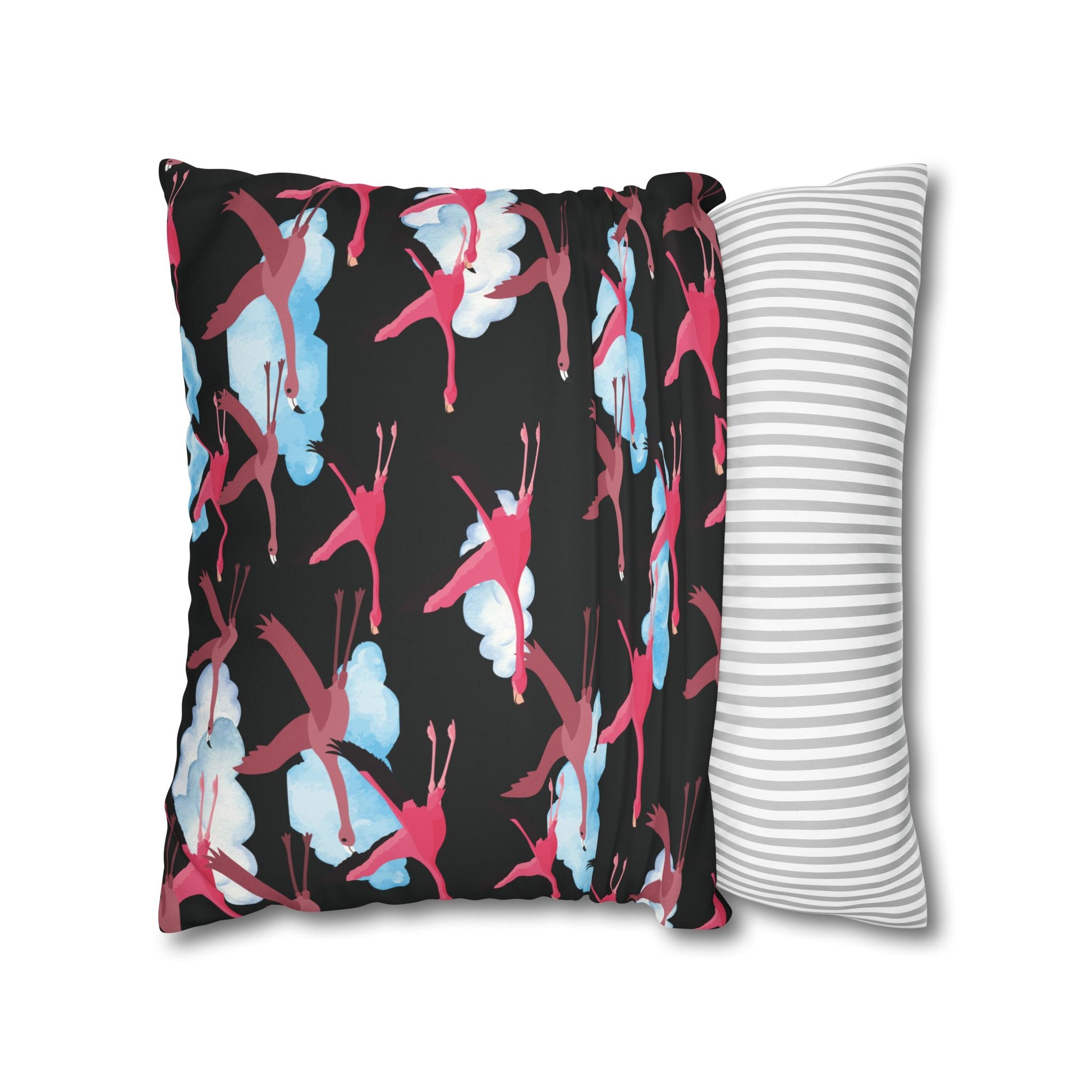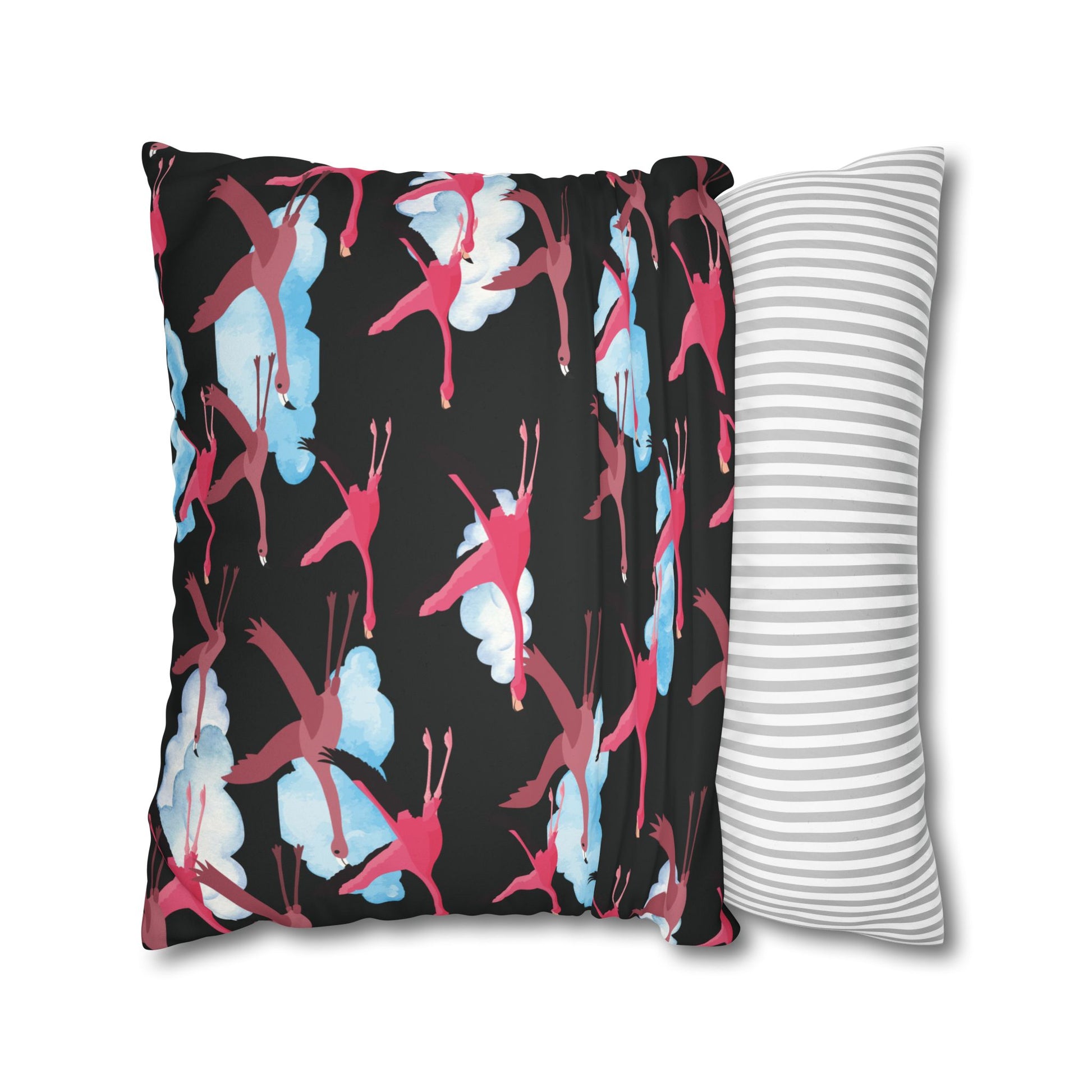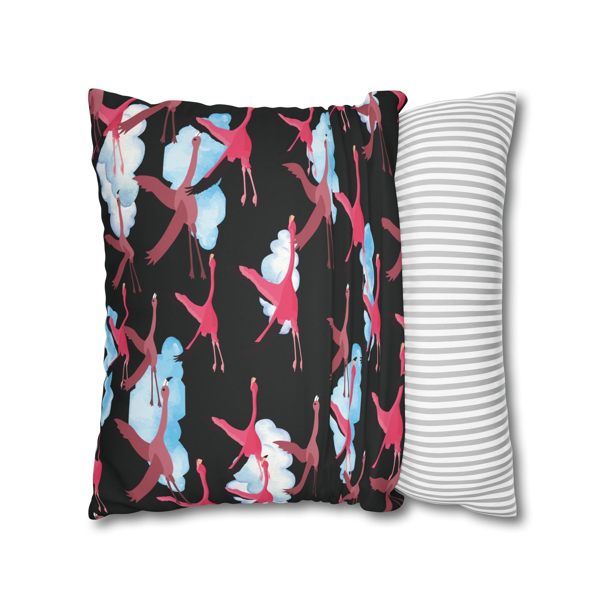 Flying Flamingo Lux Faux Suede Pillow Cover (Black) – 18" x 18" & 20" x 20"