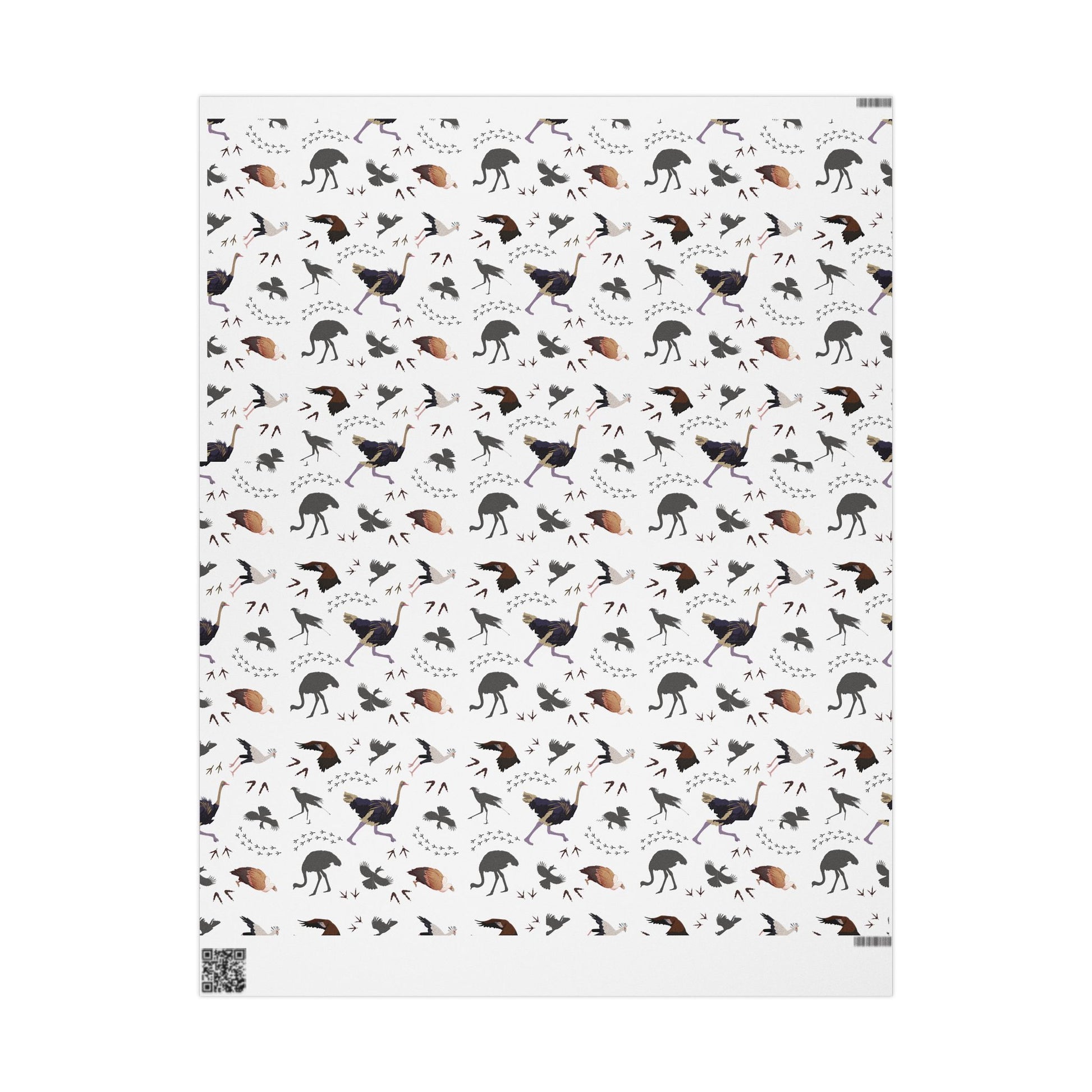 Whimsical Safari Bird Wrapping Paper (White), Eco-Friendly Gift Wrap, Perfect for Birthdays, Holidays, Celebrations, Animal Lovers