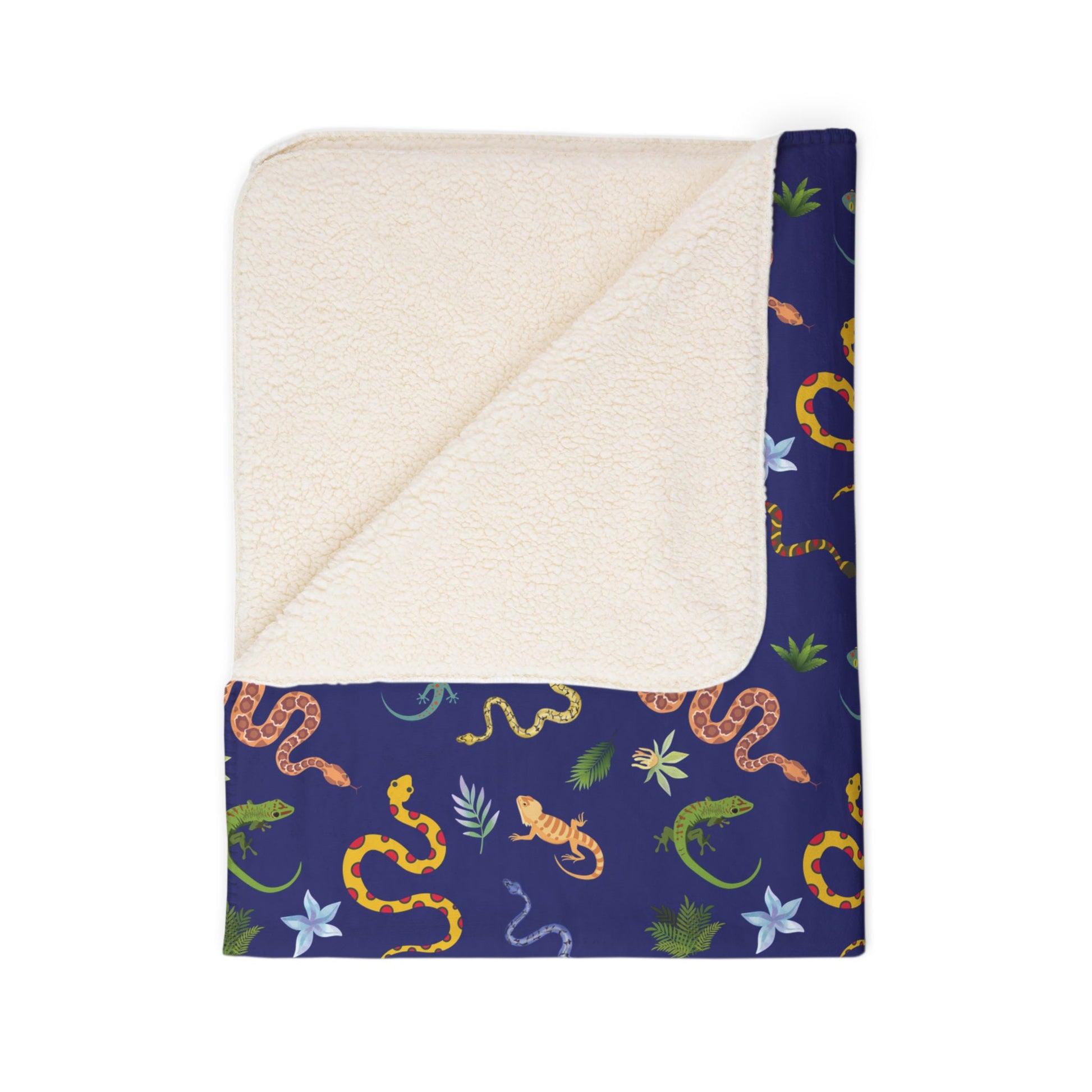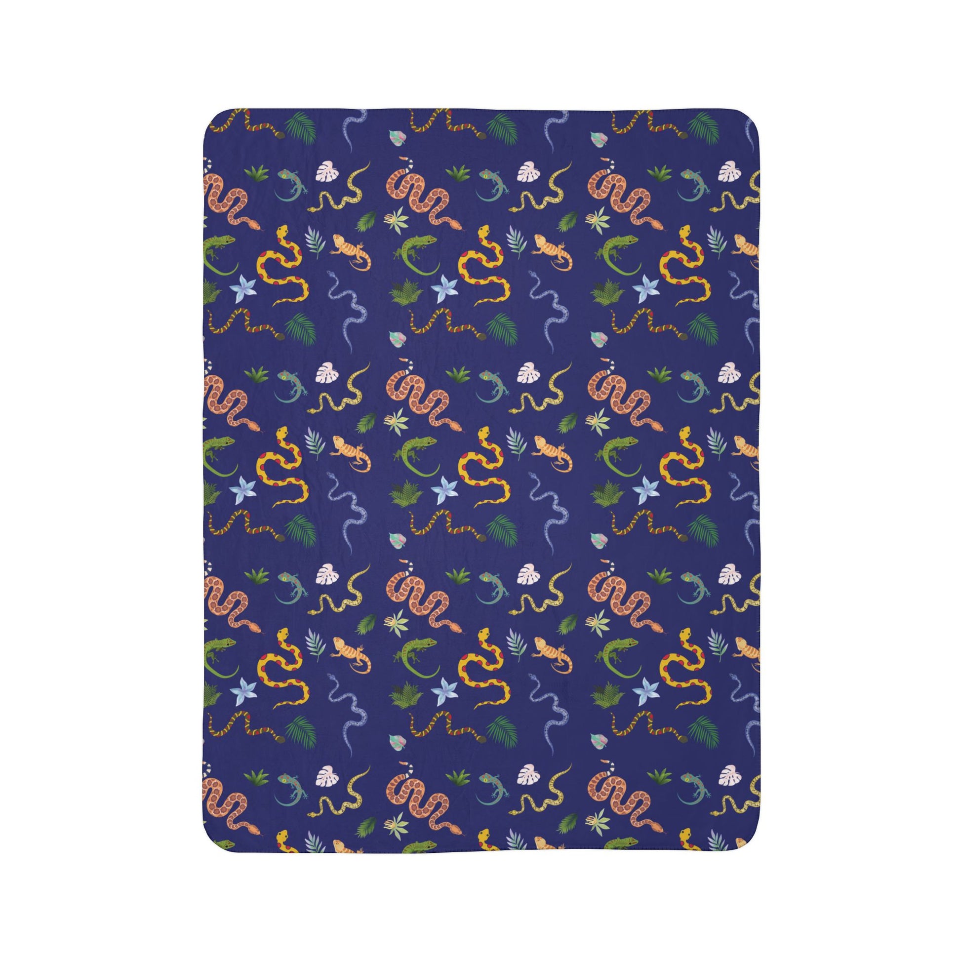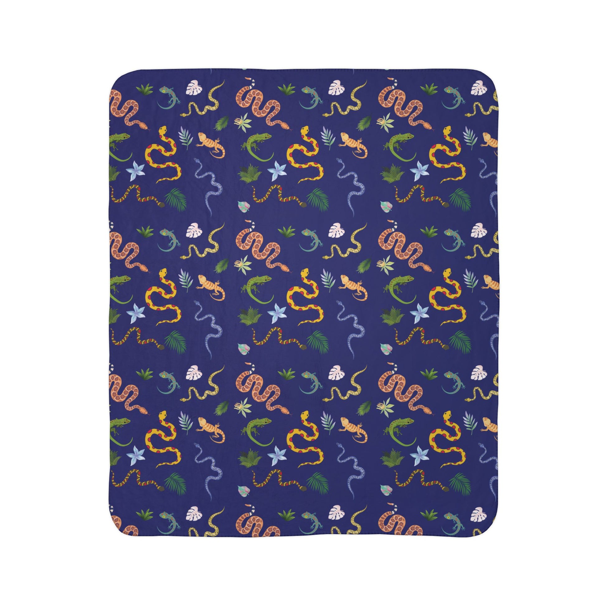 Cozy Fleece Sherpa Blanket with Dancing Reptile Pattern. Soft and warm, perfect for home use or picnics. Ideal gift for nature lovers.