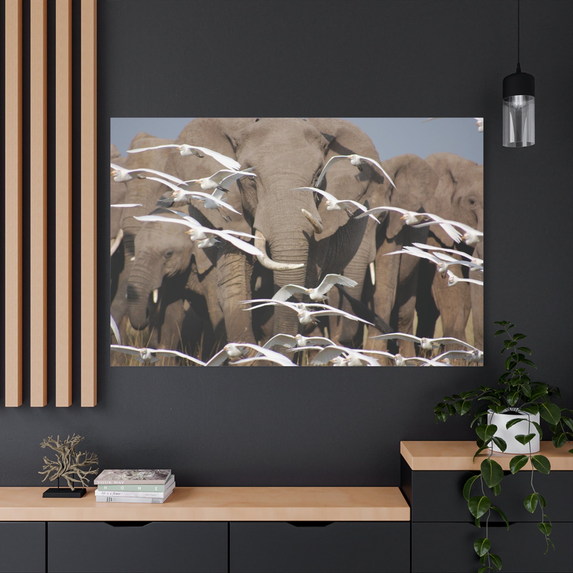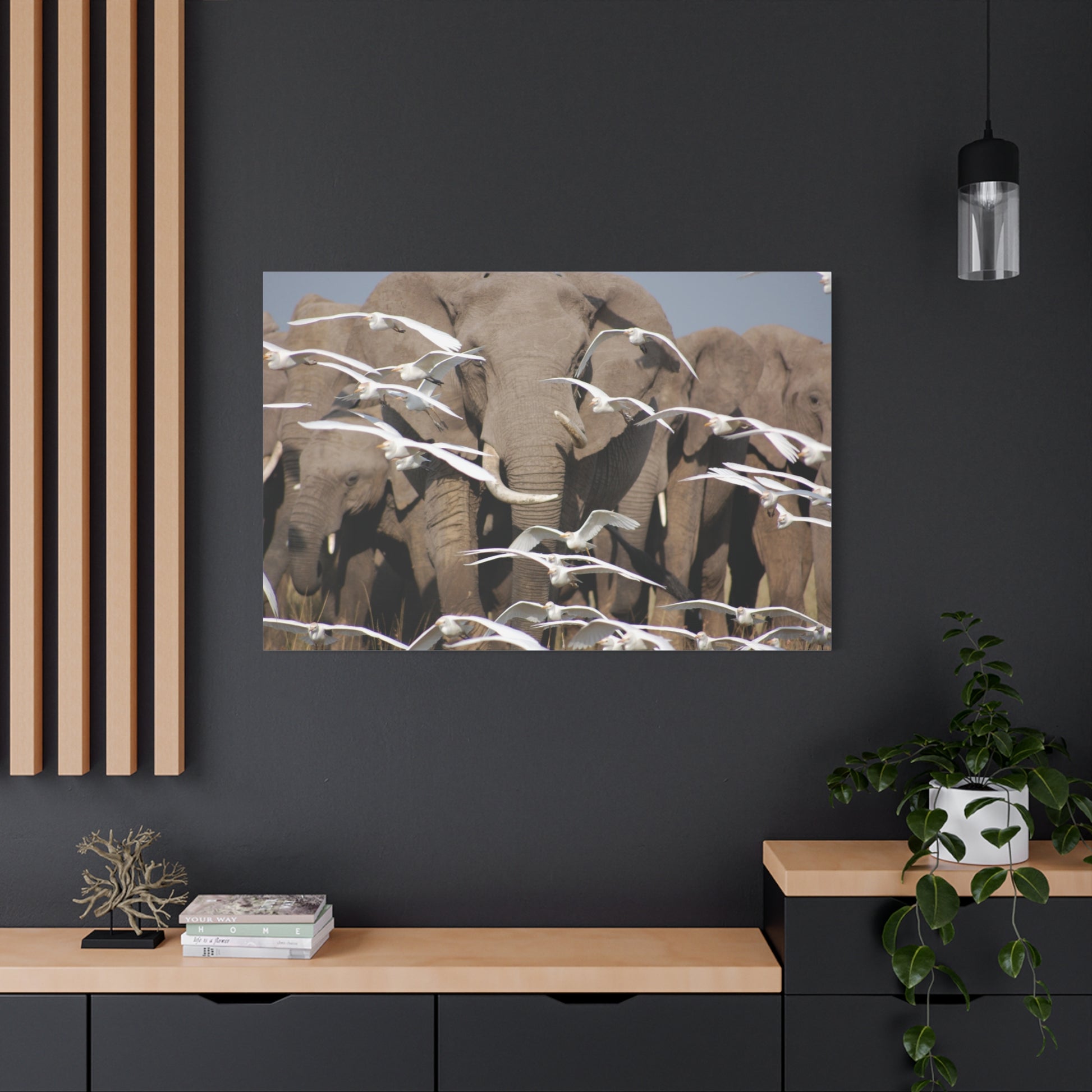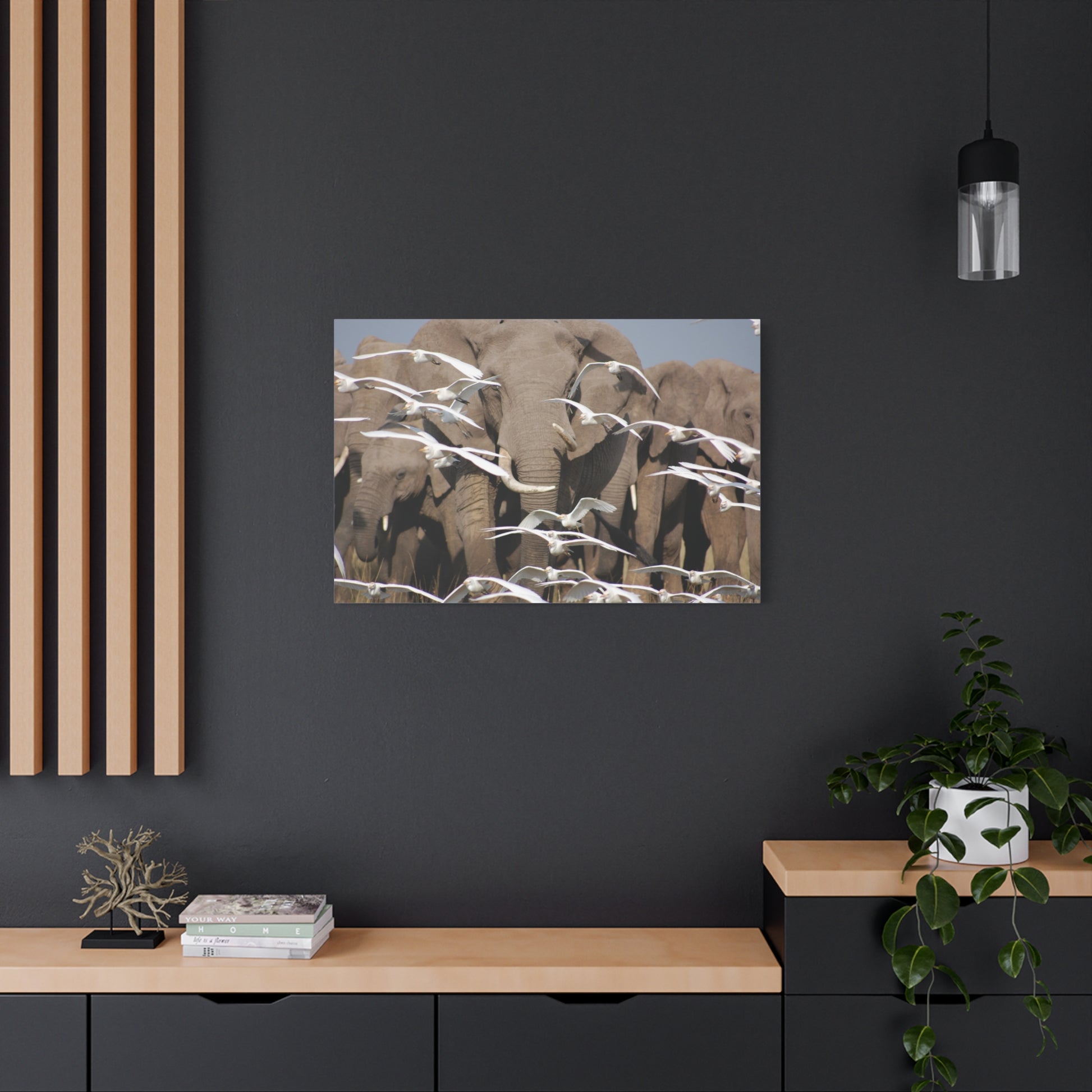 Add a touch of whimsy and beauty to your living space with the Elephant Serenade Canvas Art. Photographed by the artist when she was working in the Mara. This unique canvas art features a serene elephant design that is perfect for animal lovers and nature enthusiasts. It provides a calming and peaceful atmosphere, making it a great addition to a living room, bedroom, or office. Ideal for gifting during birthdays, housewarmings, or as a special holiday present.