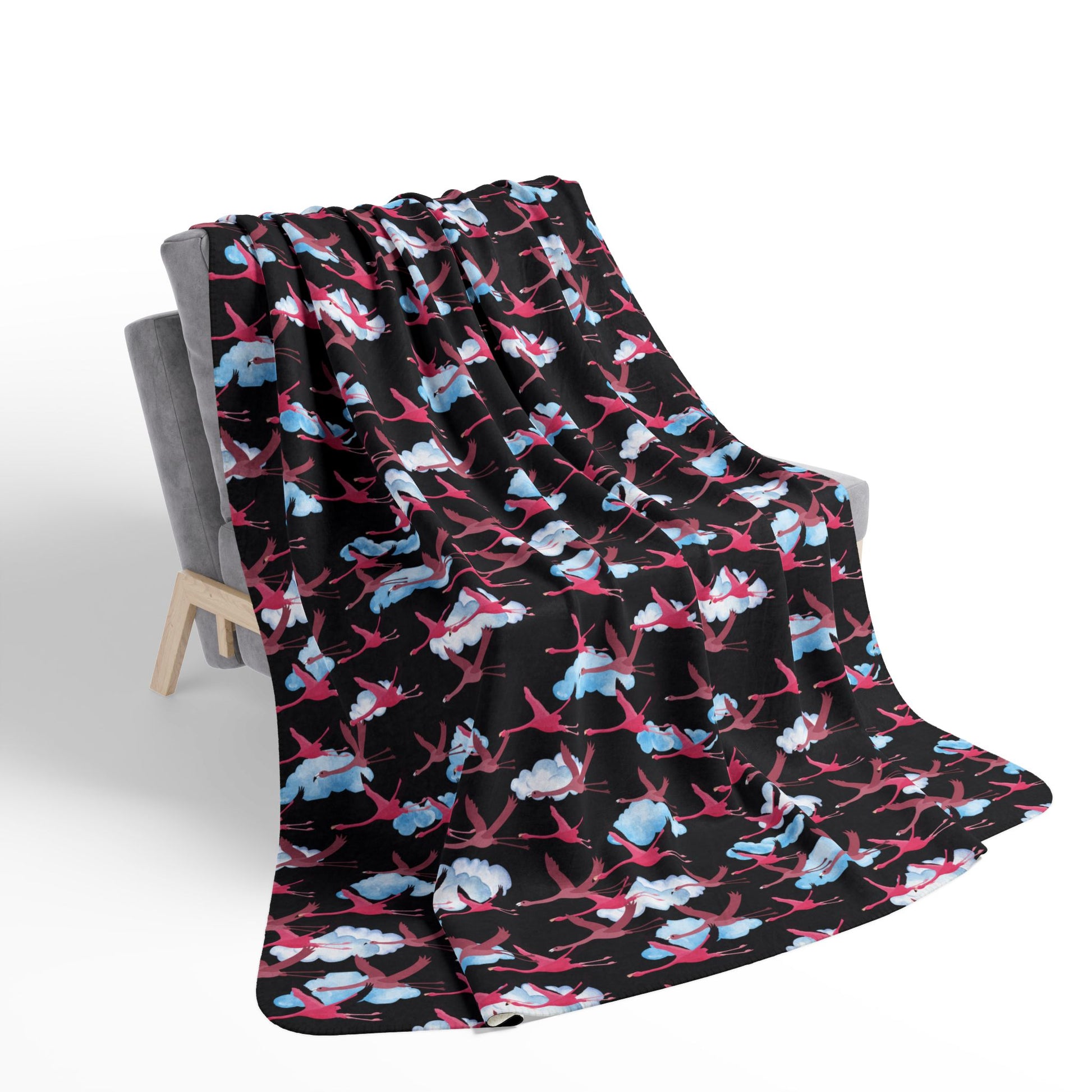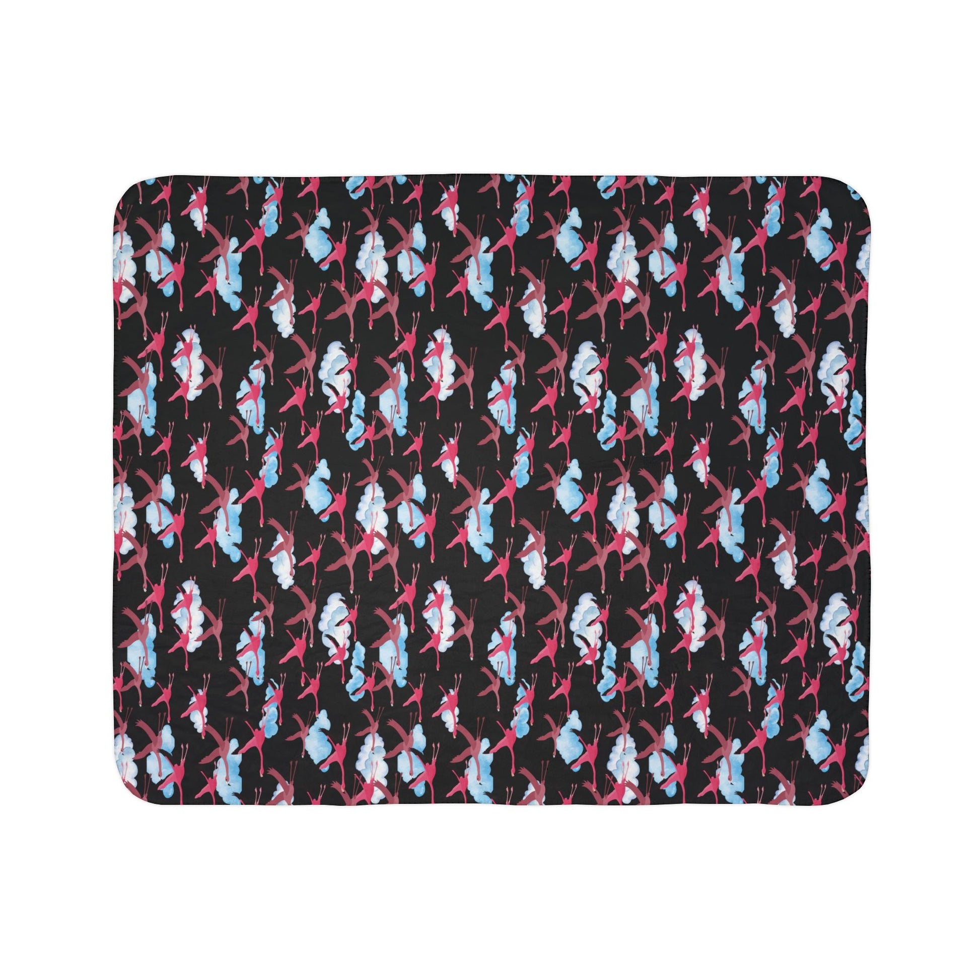 Flying Flamingo Fleece Sherpa Blanket (Black)
