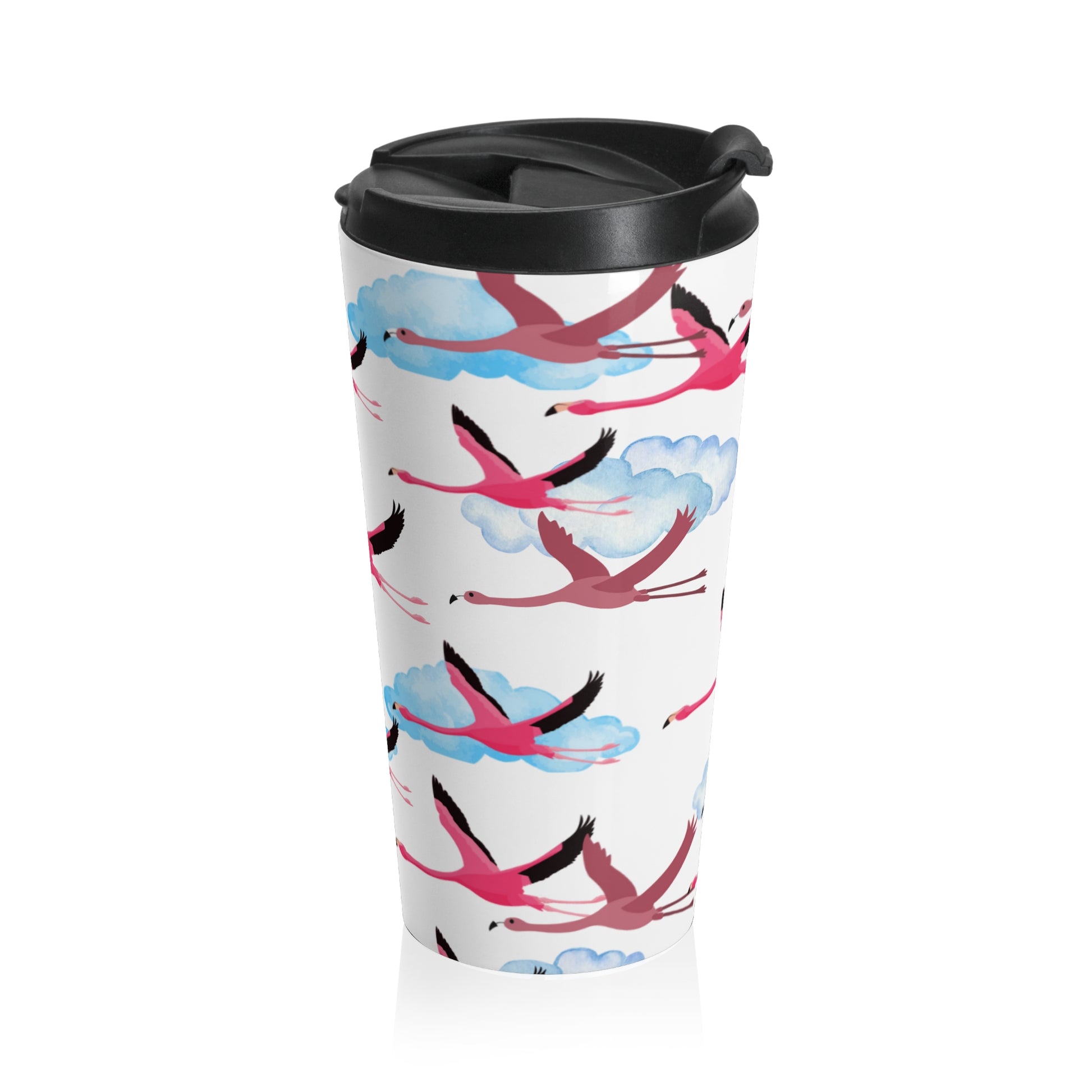 Flying Flamingo Pattern Stainless Steel Travel Mug | Stylish Travel Tumbler | Perfect Gift for Animal Lovers, Nature Enthusiasts, or Travel Junkies