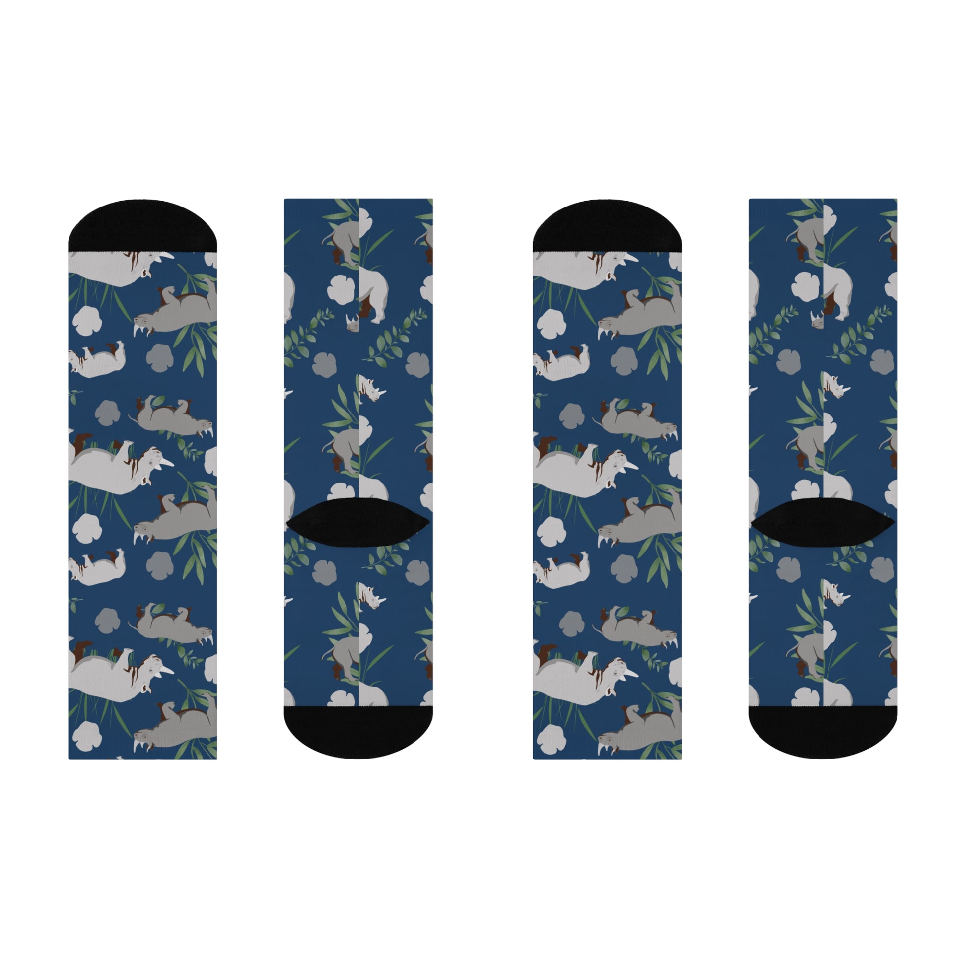 These cushioned DTG crew socks are a one-size style designed with both function and appearance in mind. With the fully cushioned heel-to-toe, these socks provide superior comfort, while the DTG print process allows for ultra-crisp, crease-free printing. Composed of 73% polyester, 18% nylon, 6% spandex, and 3% cotton, these socks are an elevated alternative to the typical sublimation sock and provide a clean, comfortable base for your all-over print designs.