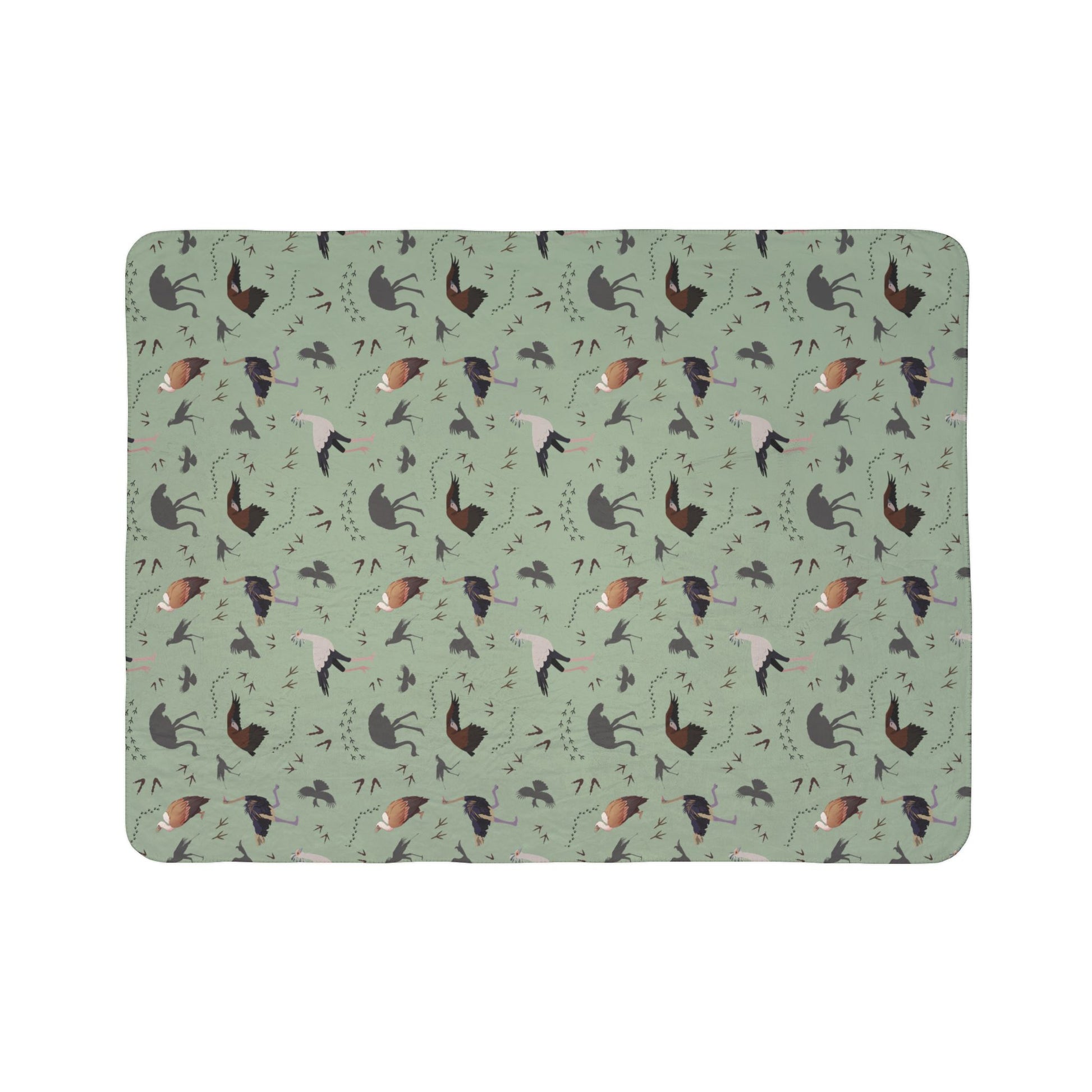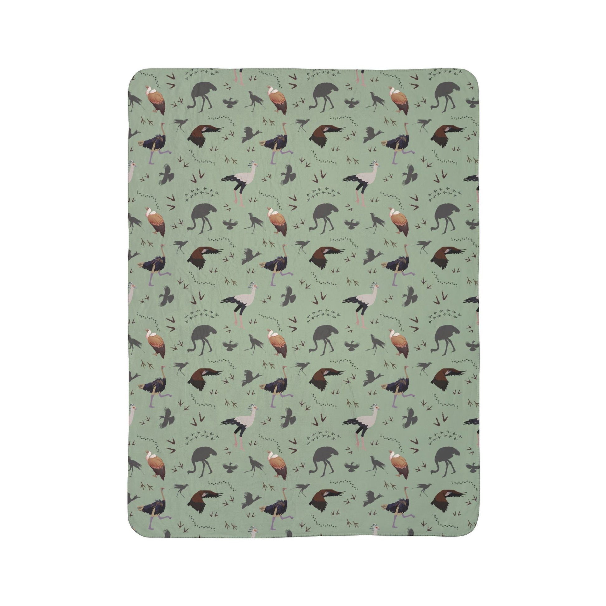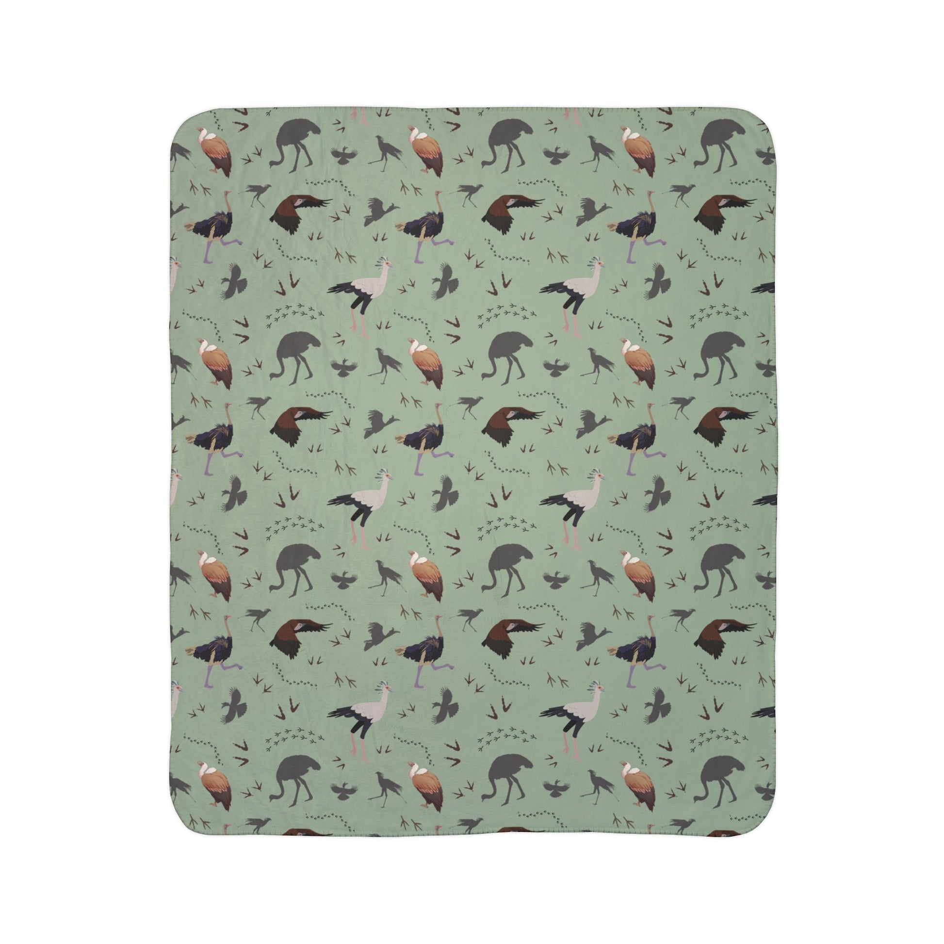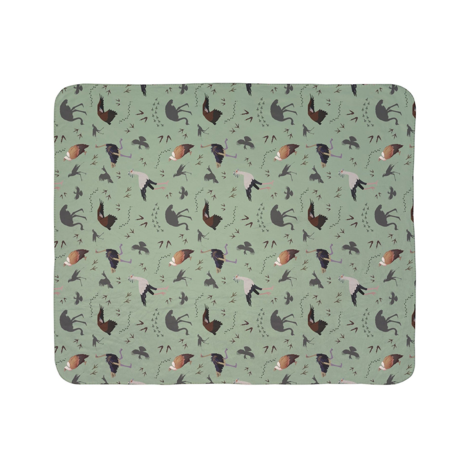 Safari Bird Fleece Sherpa Blanket (Sage)