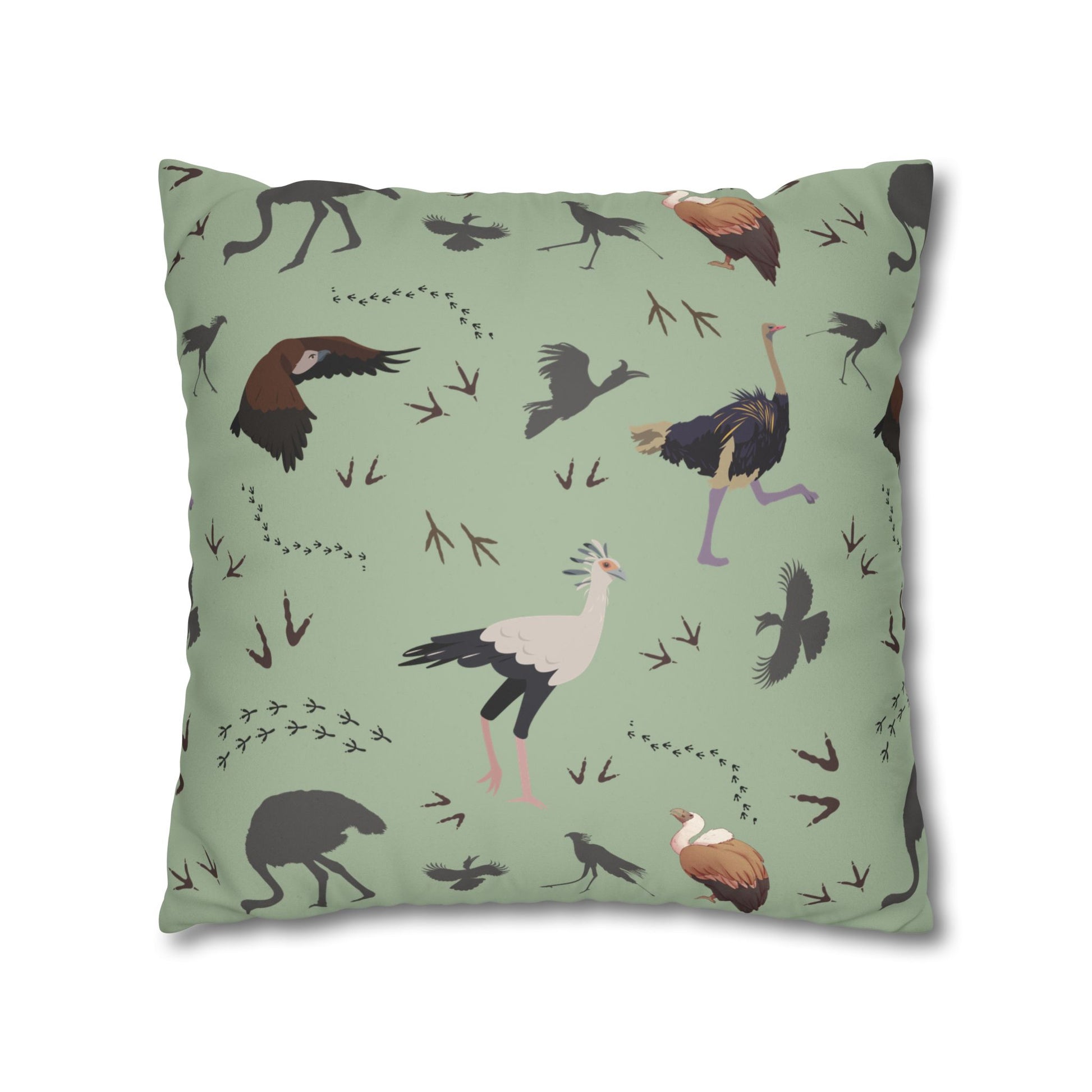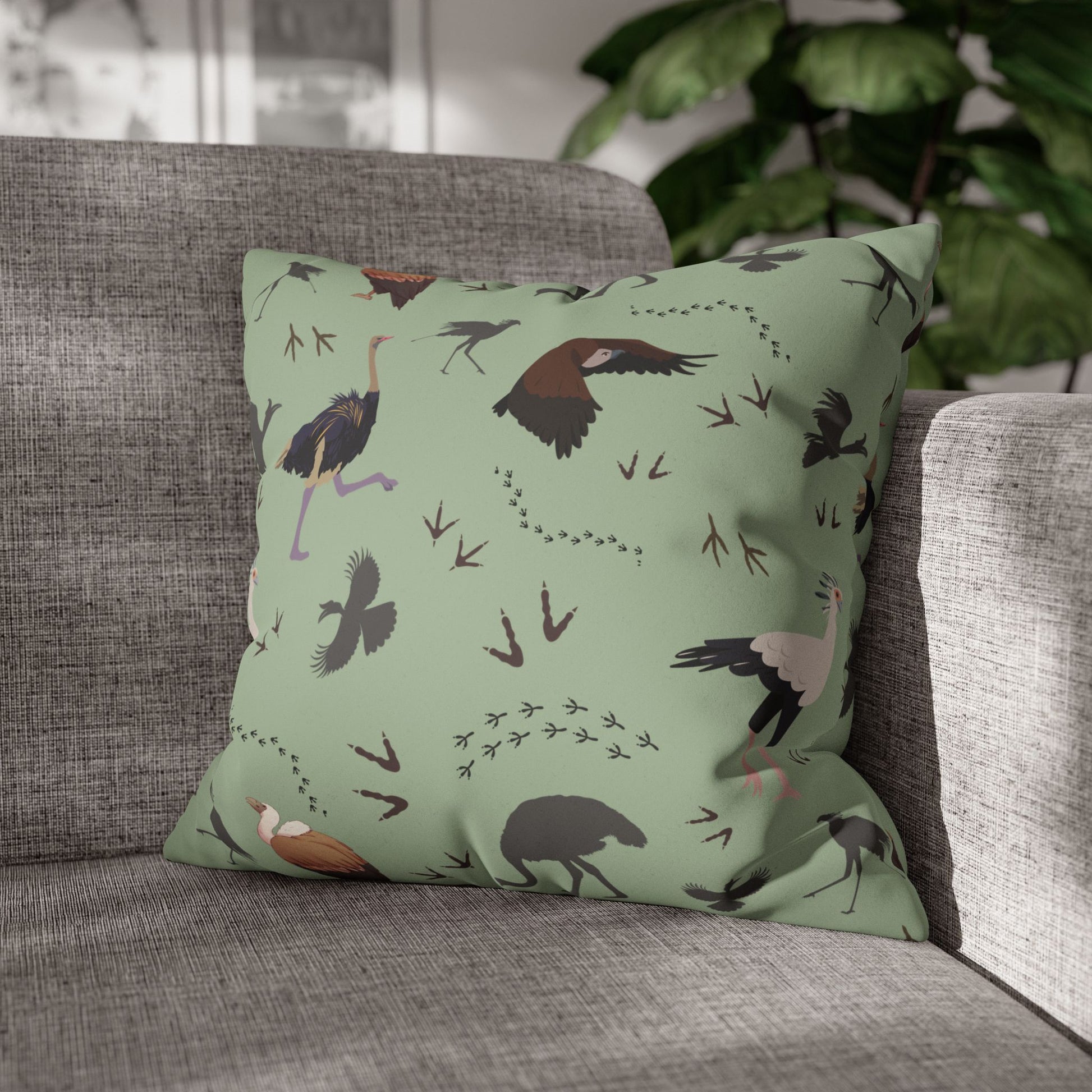 Safari Bird Lux Faux Suede Pillow Cover (Sage)– 18" x 18" & 20" x 20"