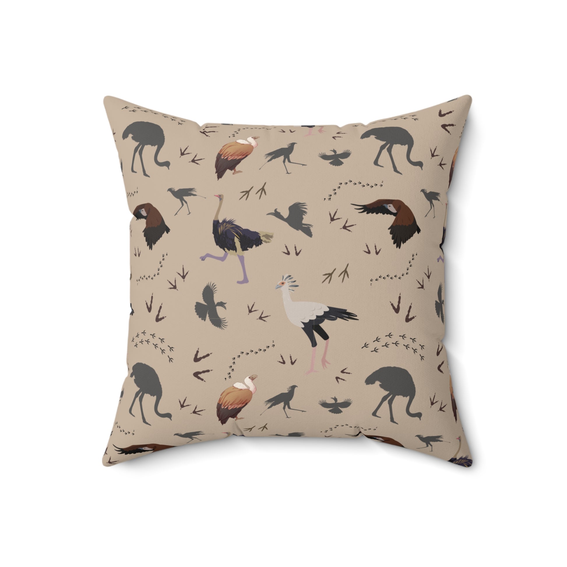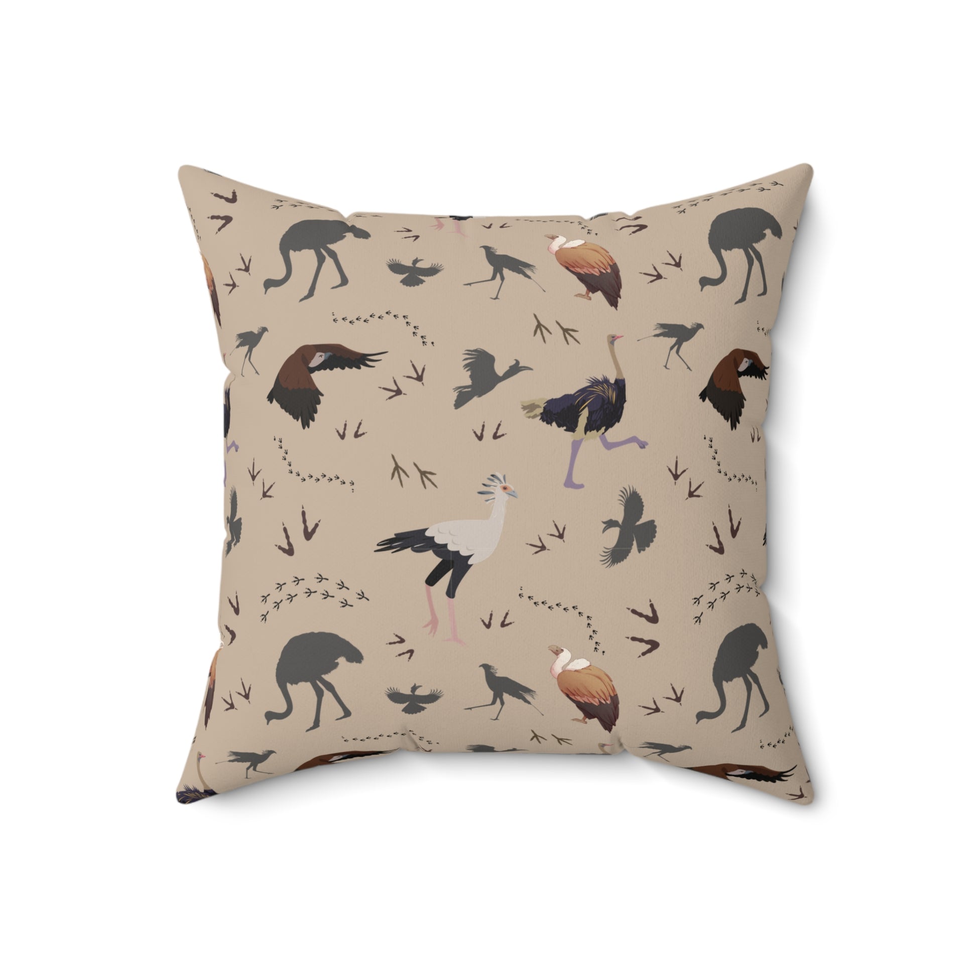 Safari Bird Print Lux Faux Suede Throw Pillow with Insert – 18" x 18" & 20" x 20" (Blush Clay)