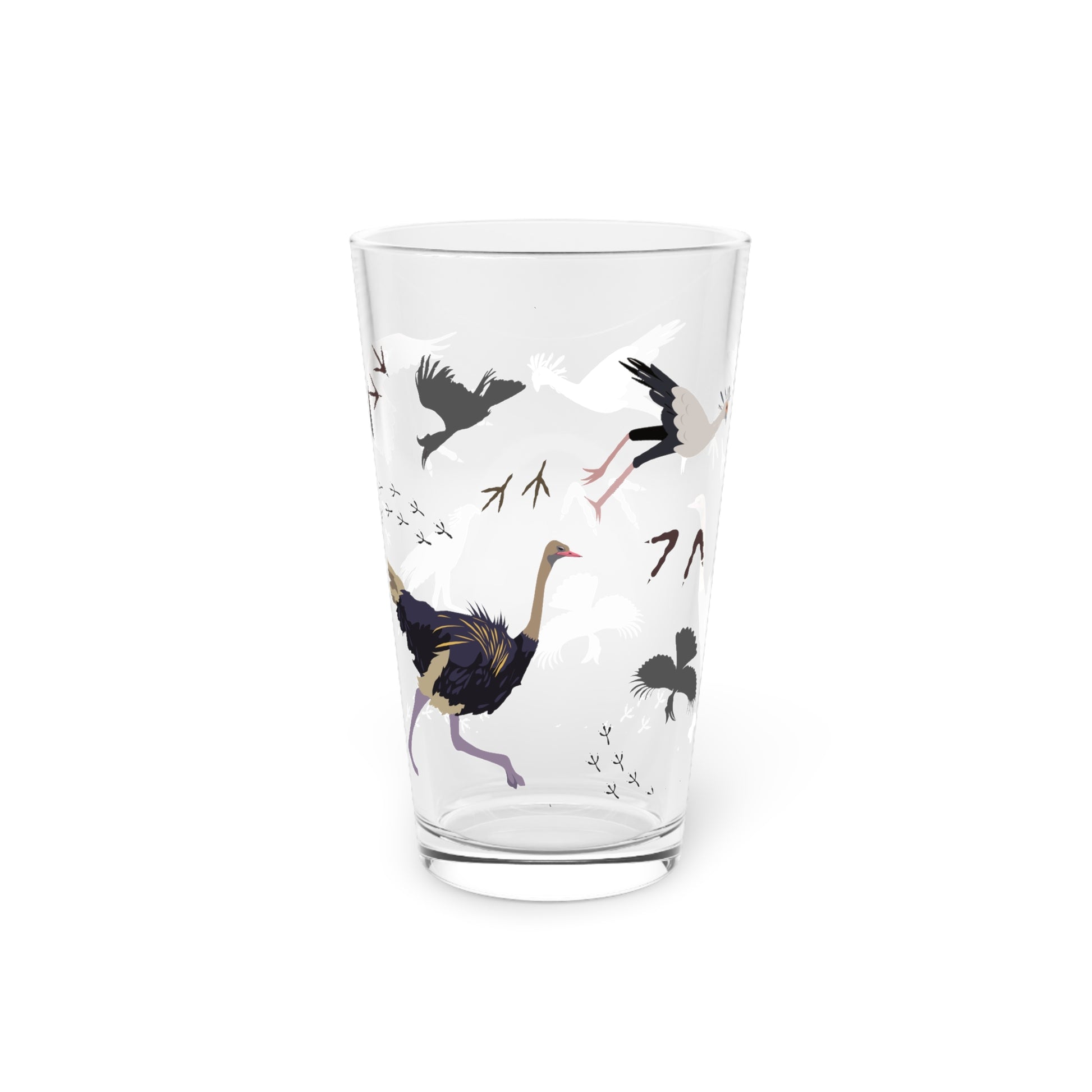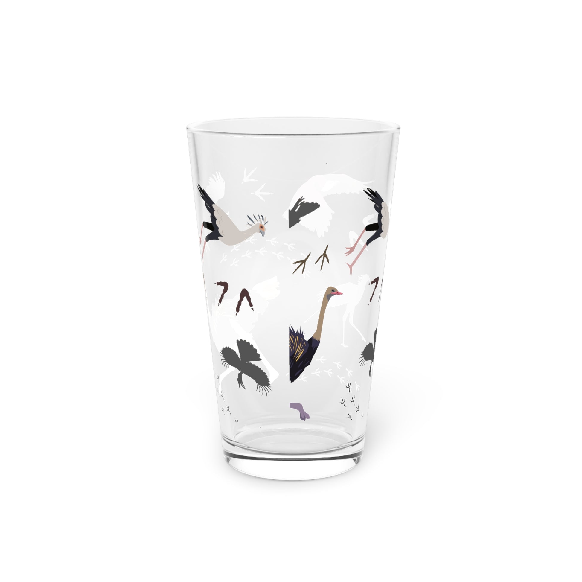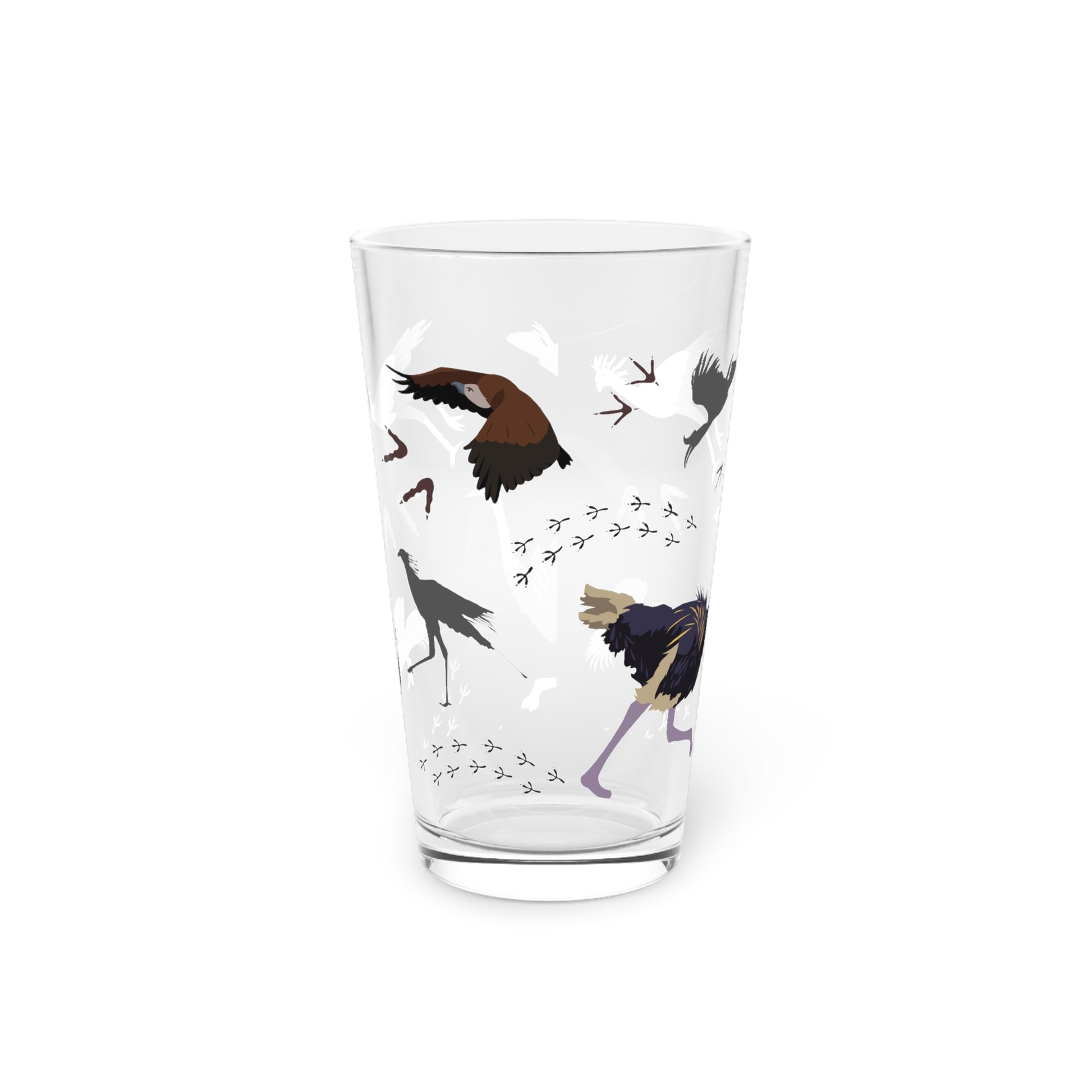 Safari Bird Print Pint Glass, 16oz Drinking Glass, Animal Lover Gift, Safari Decor, Unique Party Glassware, Gift for Him/Her