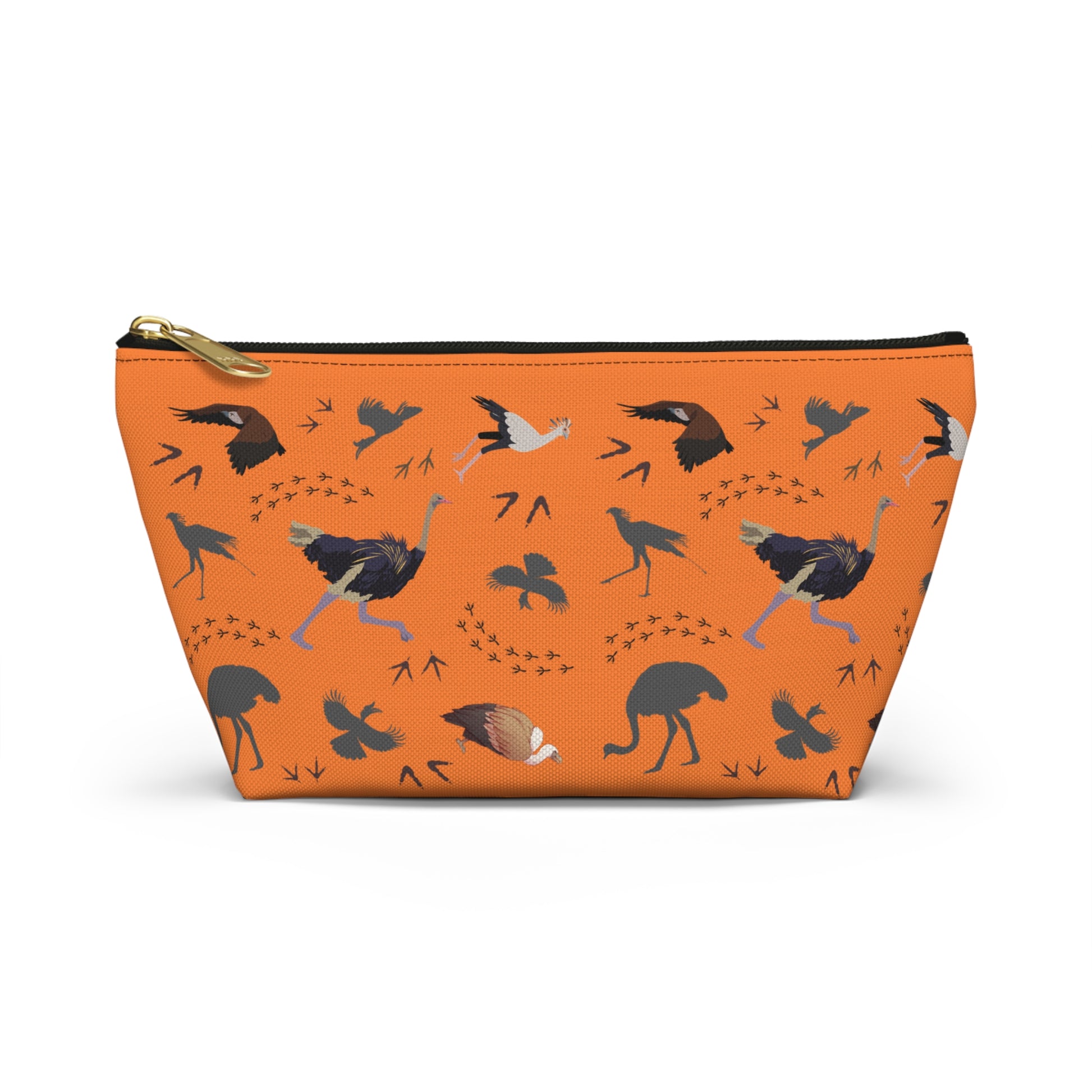 Safari Bird-Themed Accessory Pouch (Orange) for Nature Lovers, Travel Toiletry Bag, Organizer, Gift for Birdwatchers, Wildlife Enthusiasts