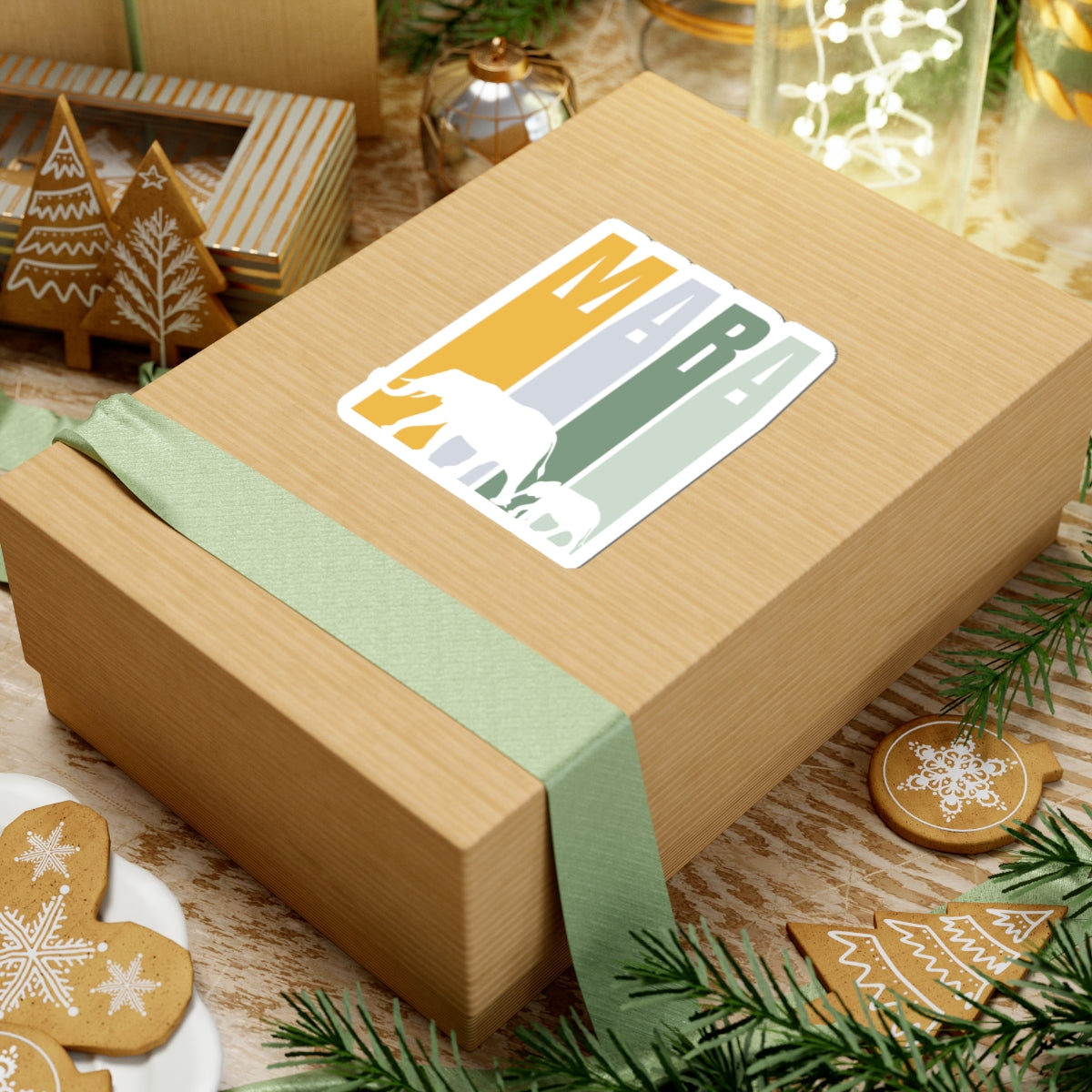 Safari Themed, Mummy and baby Elephants, Masai Mara, Green Yellow, Vibrant Kiss-Cut Stickers for Laptop, Scrapbooking, Gifts, Eco-Friendly Decor, Customizable Designs