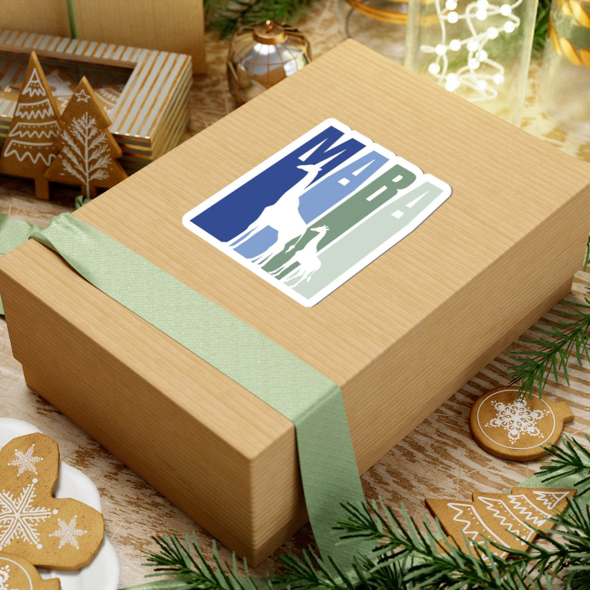 Safari Themed, Mummy and baby Giraffes, Masai Mara, Blue, Vibrant Kiss-Cut Stickers for Laptop, Scrapbooking, Gifts, Eco-Friendly Decor, Customizable Designs