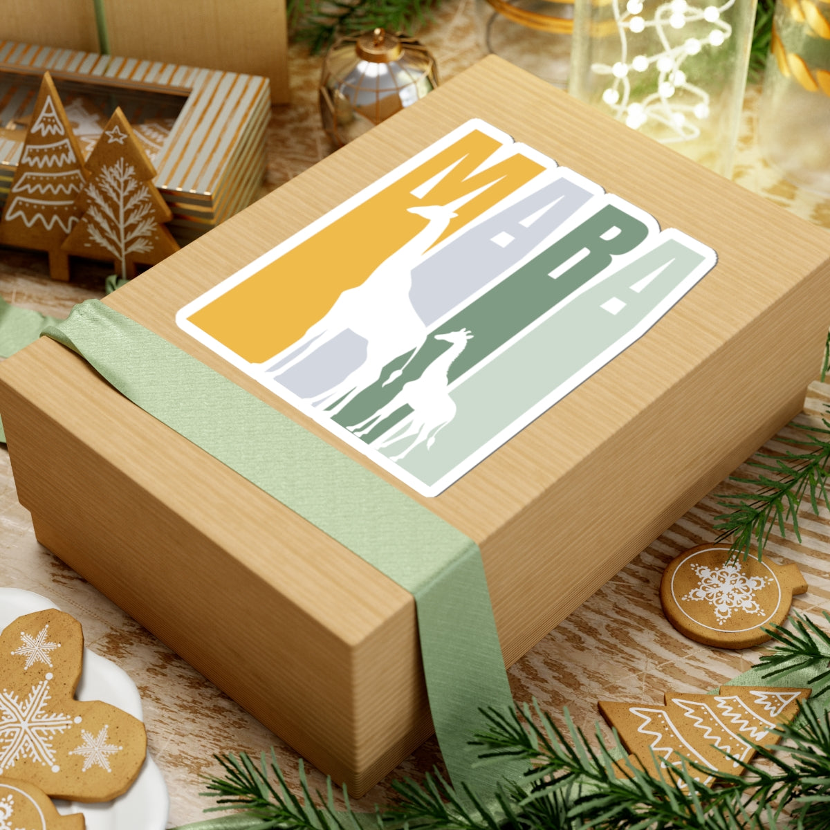 Safari Themed, Mummy and baby Giraffes, Masai Mara, Green Yellow, Vibrant Kiss-Cut Stickers for Laptop, Scrapbooking, Gifts, Eco-Friendly Decor, Customizable Designs