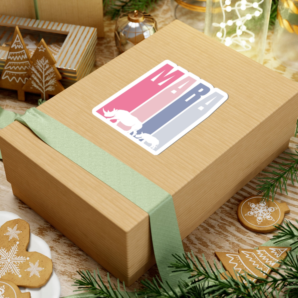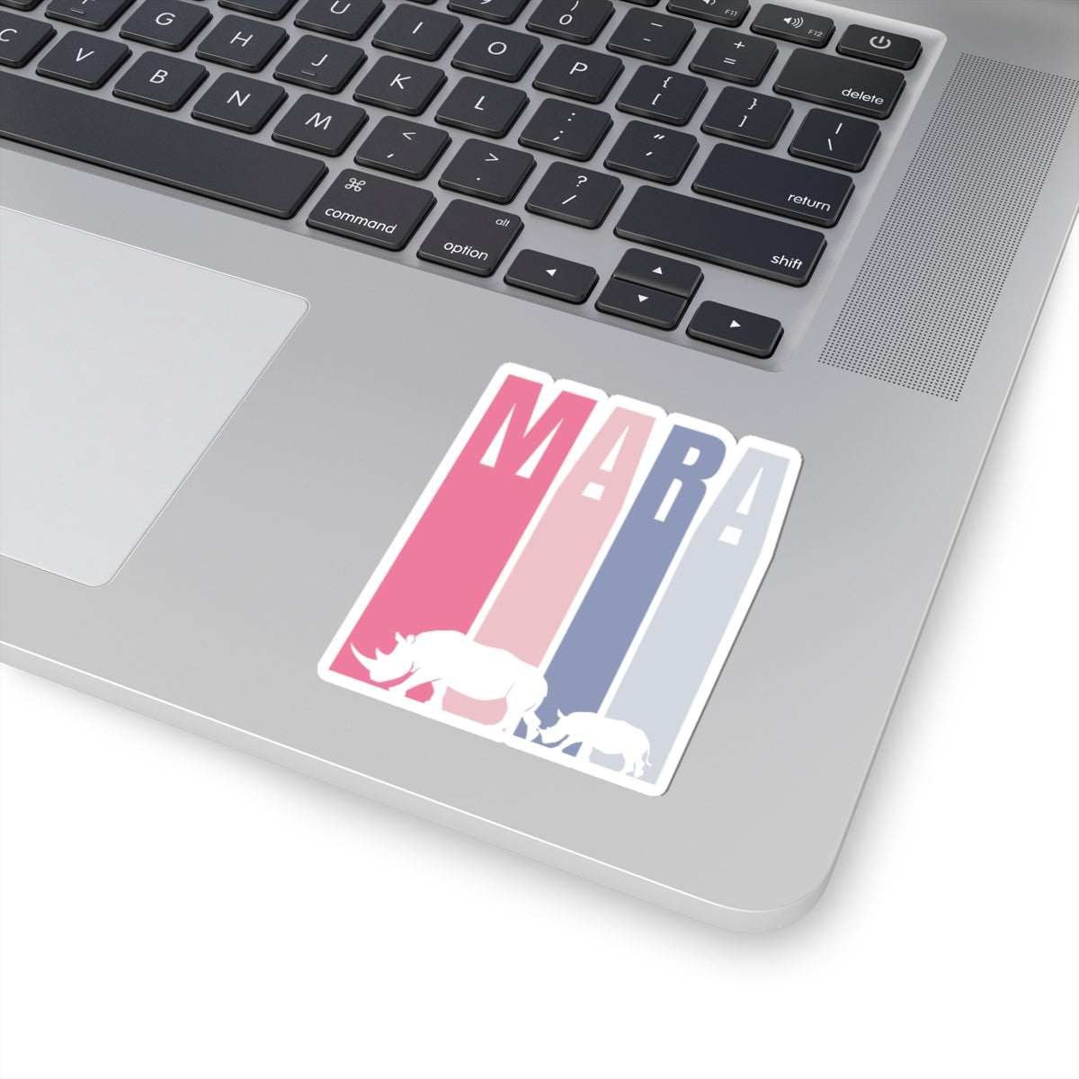 Safari Themed, Mummy and baby Rhino, Masai Mara, Pink, Vibrant Kiss-Cut Stickers for Laptop, Scrapbooking, Gifts, Eco-Friendly Decor, Customizable Designs