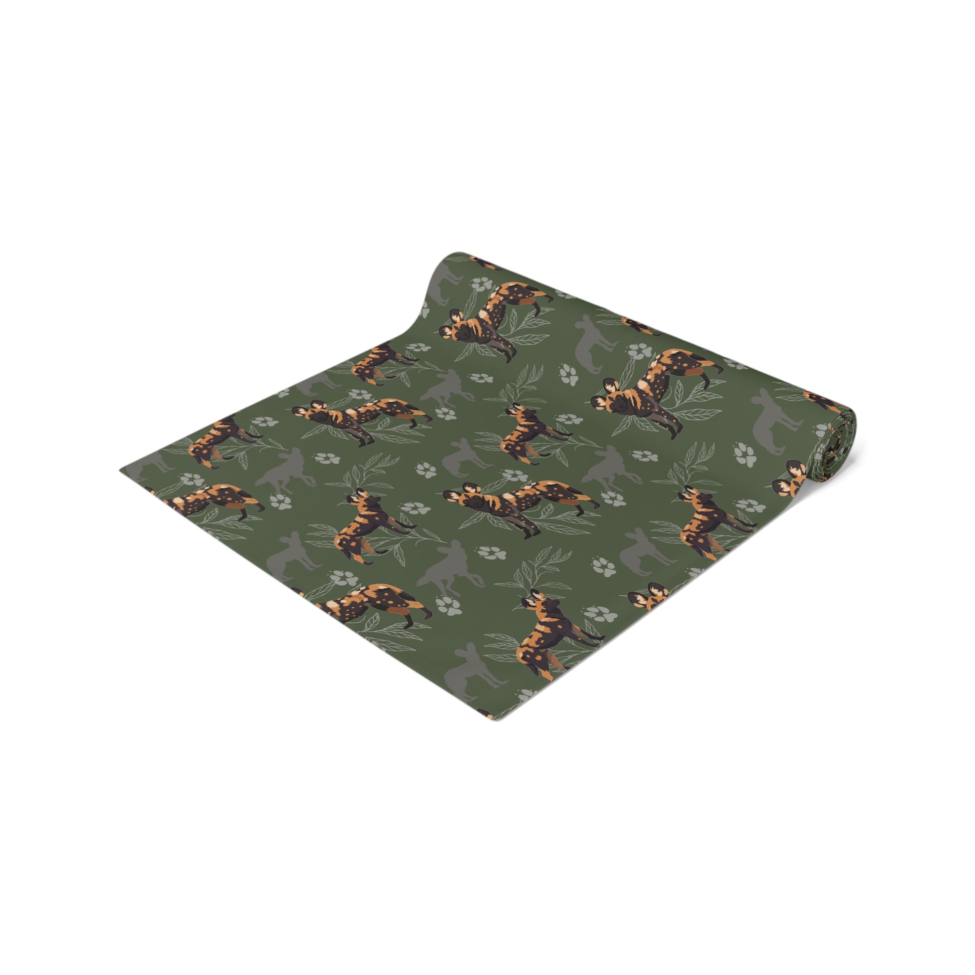 This Wild Dog Pack Table Runner in Polyester adds a touch of exotic charm to any dining table. The vibrant design brings a fun and playful vibe to your home decor. Perfect for those who love bold and unique patterns, this table runner is ideal for summer parties, outdoor barbecues, and tropical-themed gatherings.