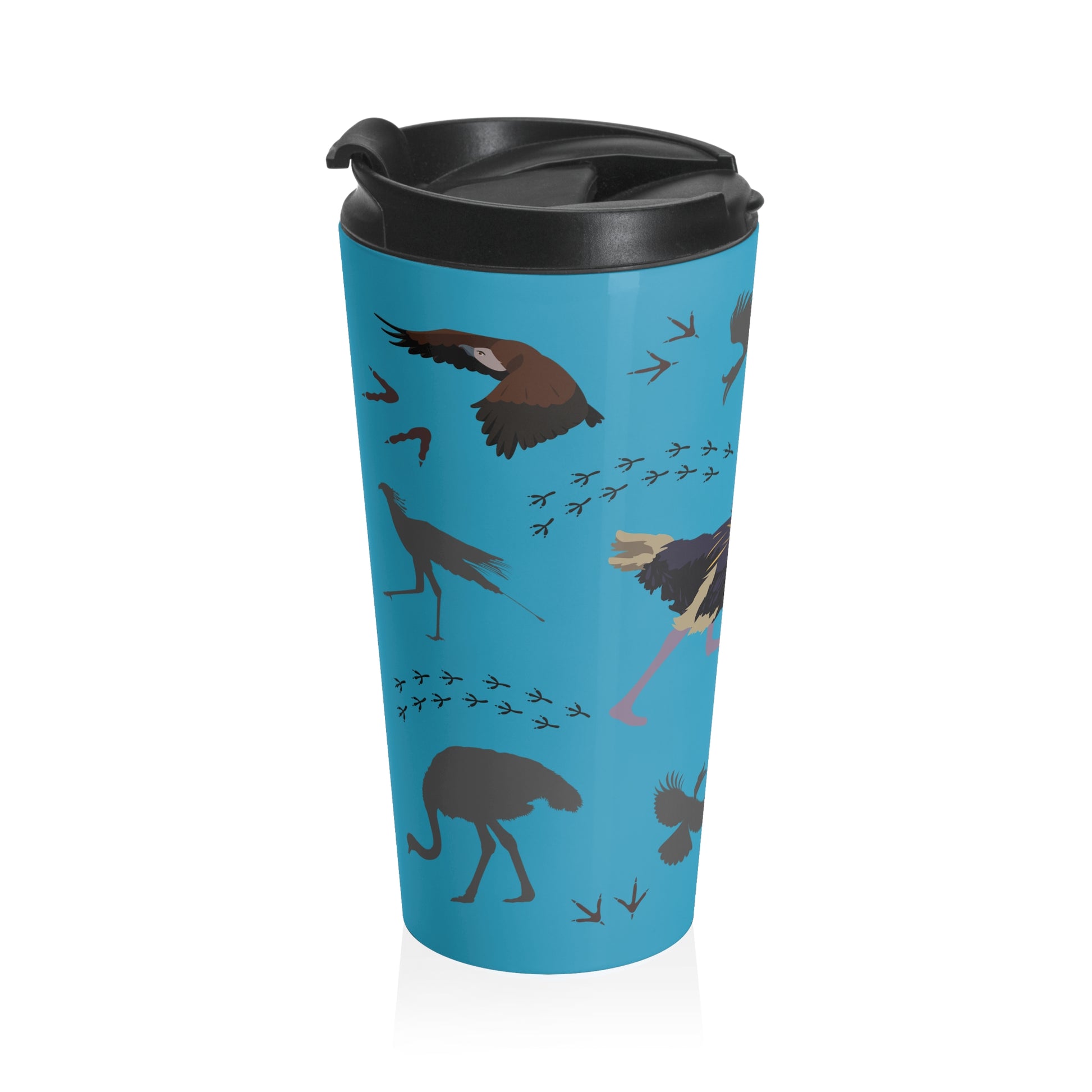 Safari Bird Pattern Stainless Steel Travel Mug (Turquoise), Bird Lover Gift, Coffee Cup for Outdoor Adventures, Animal Prints, Eco-Friendly Travel Accessory