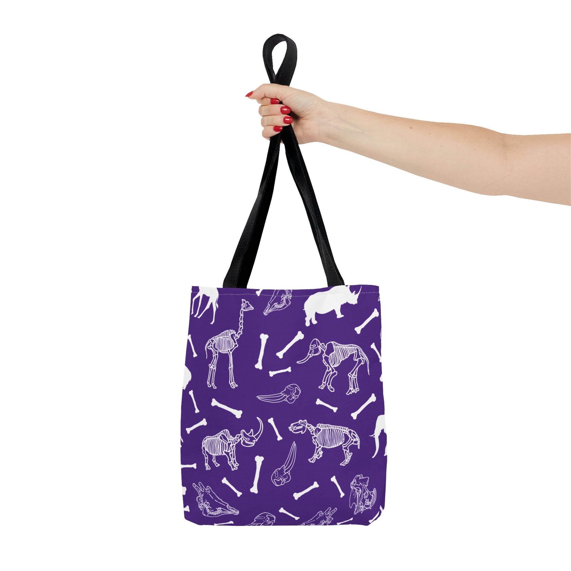 Whimsical Animal Skeletons Tote Bag (Purple), Perfect for Animal Lovers, Halloween, Eco-Friendly Bag, Gift for Pet Owners, Shopping Bag, Halloween Gift