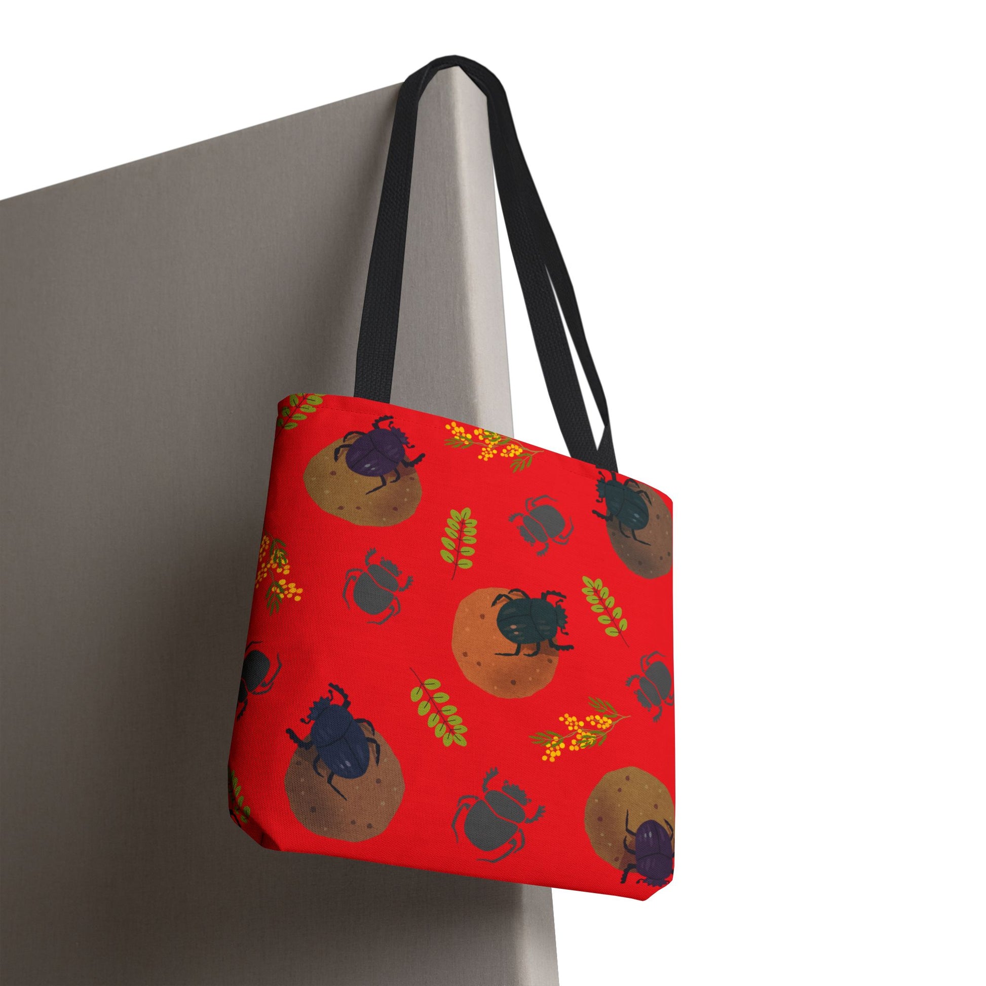 Whimsical Dung Beetle Tote Bag (Red), Perfect for Animal Lovers, Halloween, Eco-Friendly Bag, Gift for Pet Owners, Shopping Bag, Halloween Gift