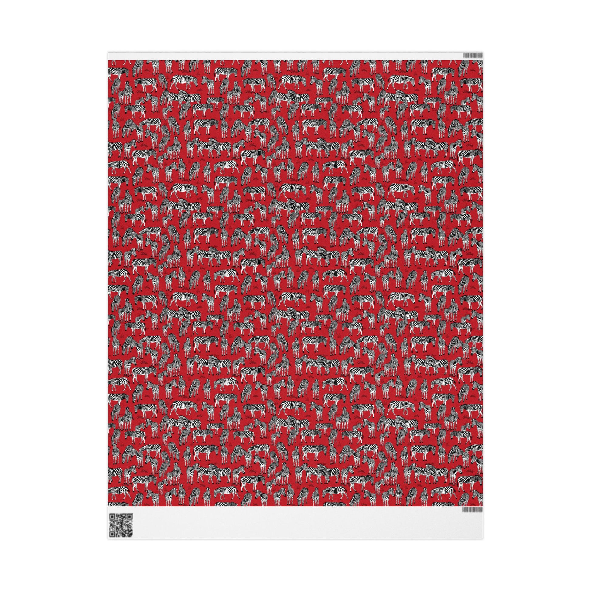 Whimsical Zebra Herd Wrapping Paper (Red)
