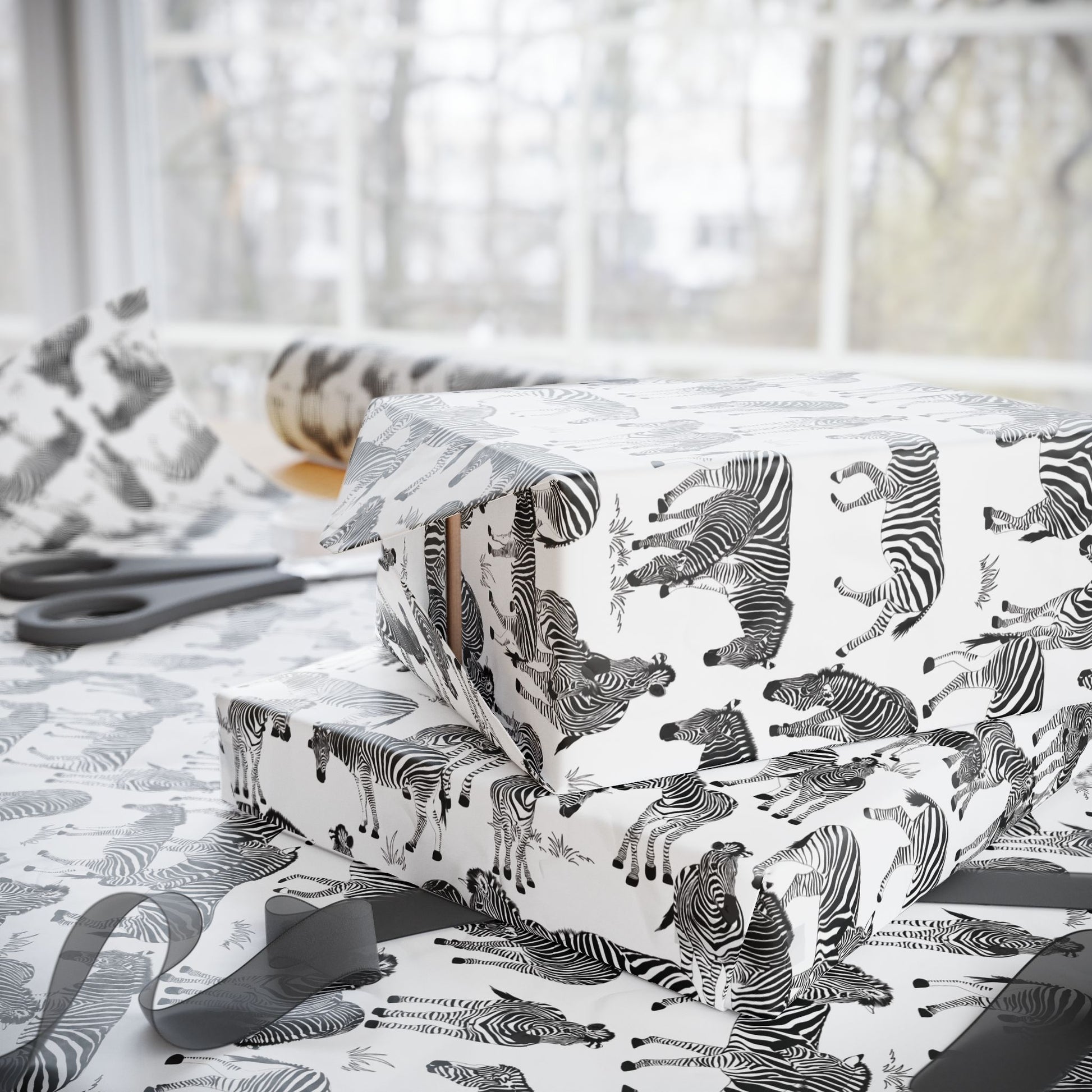 Whimsical Zebra Herd Wrapping Paper (White), Eco-Friendly Gift Wrap, Perfect for Birthdays, Holidays, Celebrations, Animal Lovers