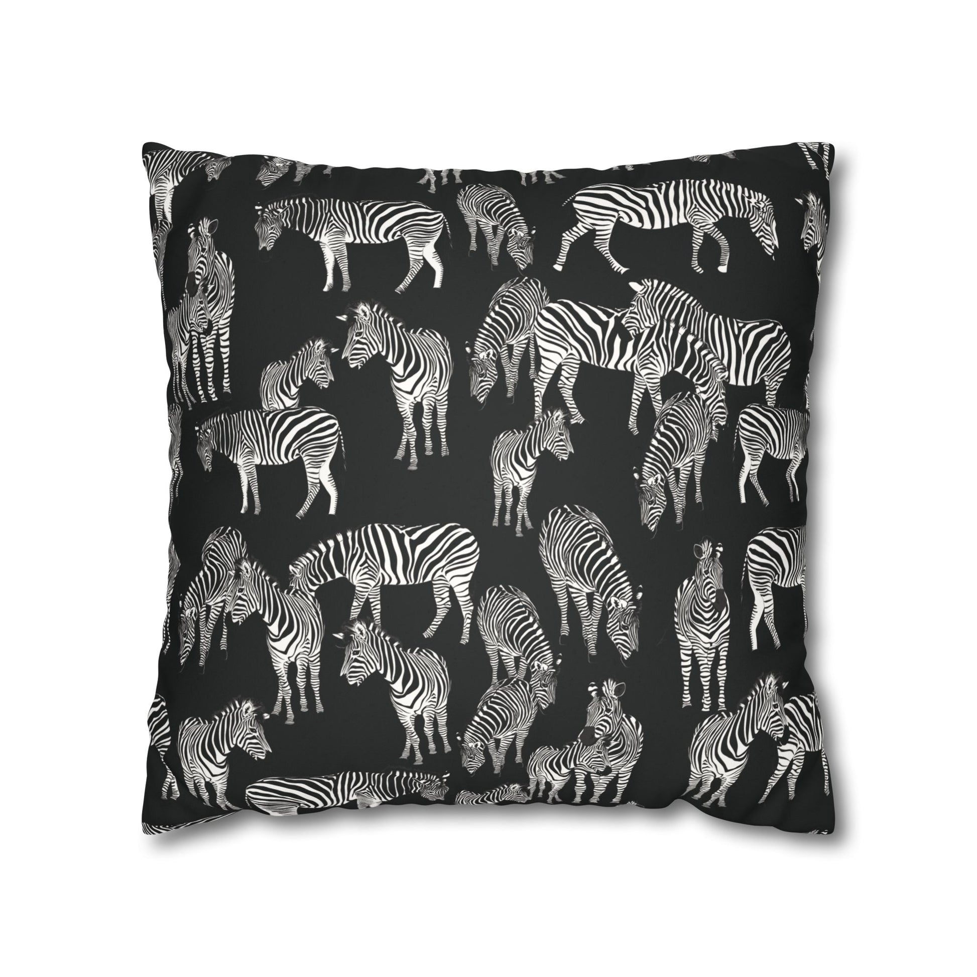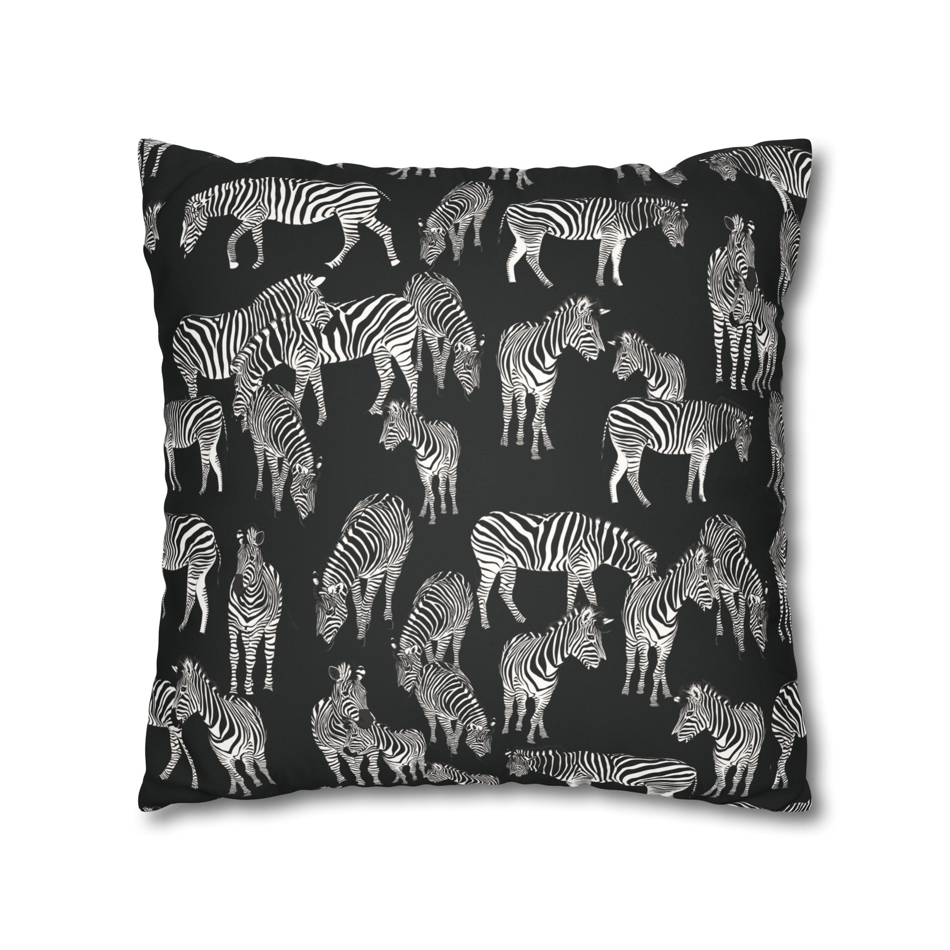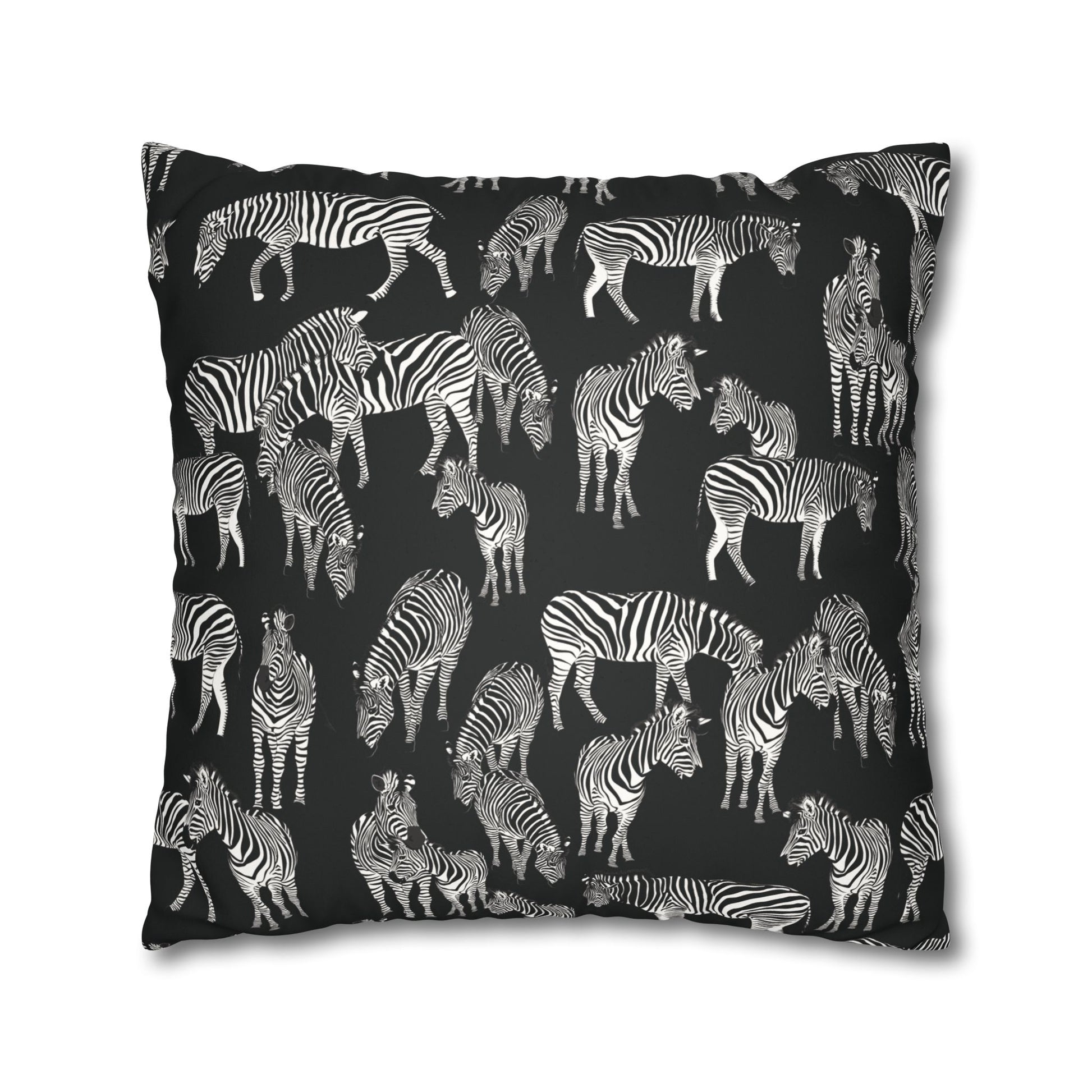 Zebra Herd Lux Faux Suede Throw Pillow Cover – 18" x 18" & 20" x 20" (Black)