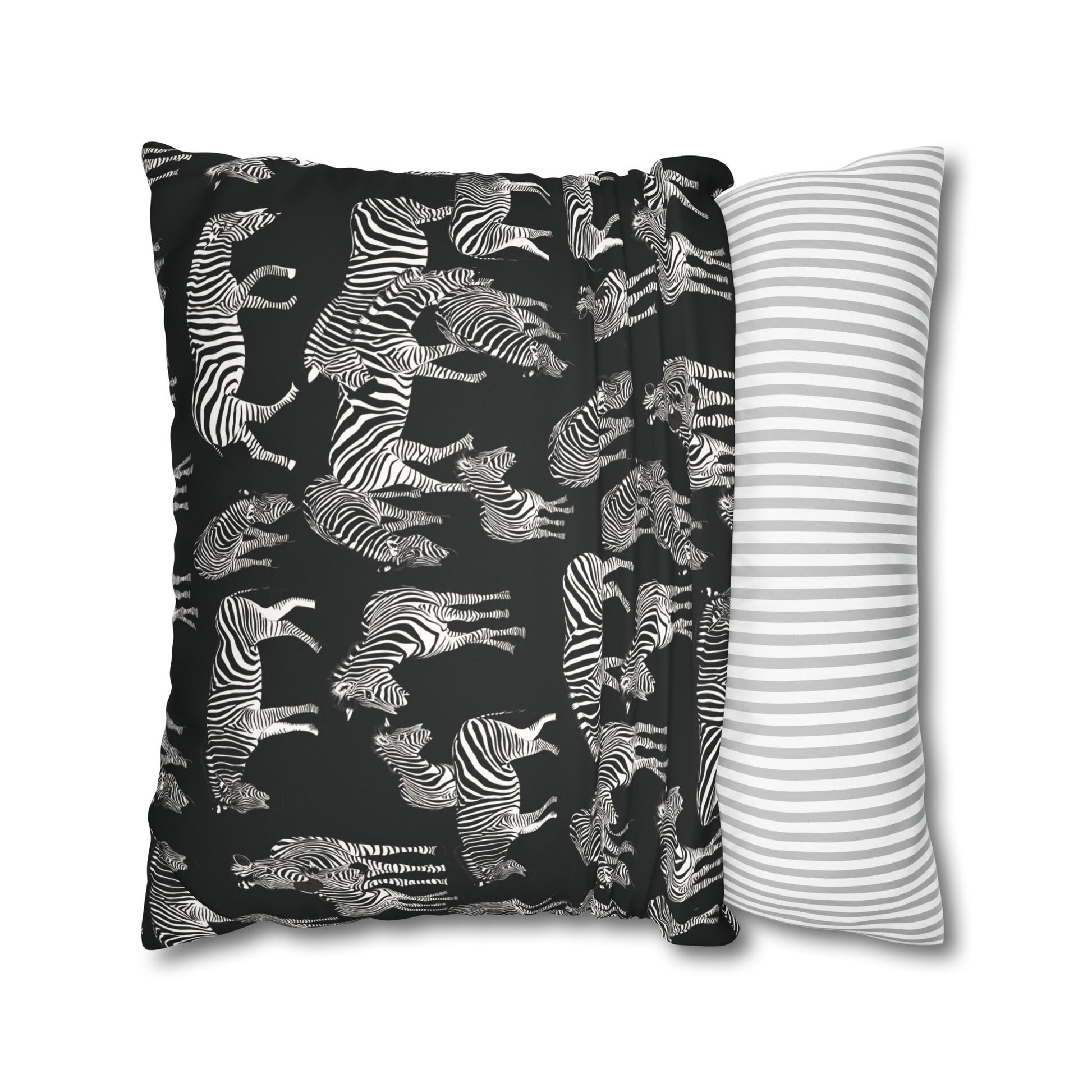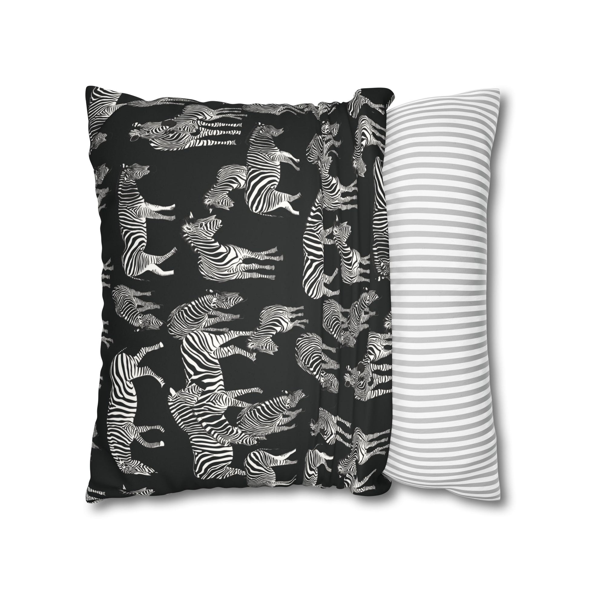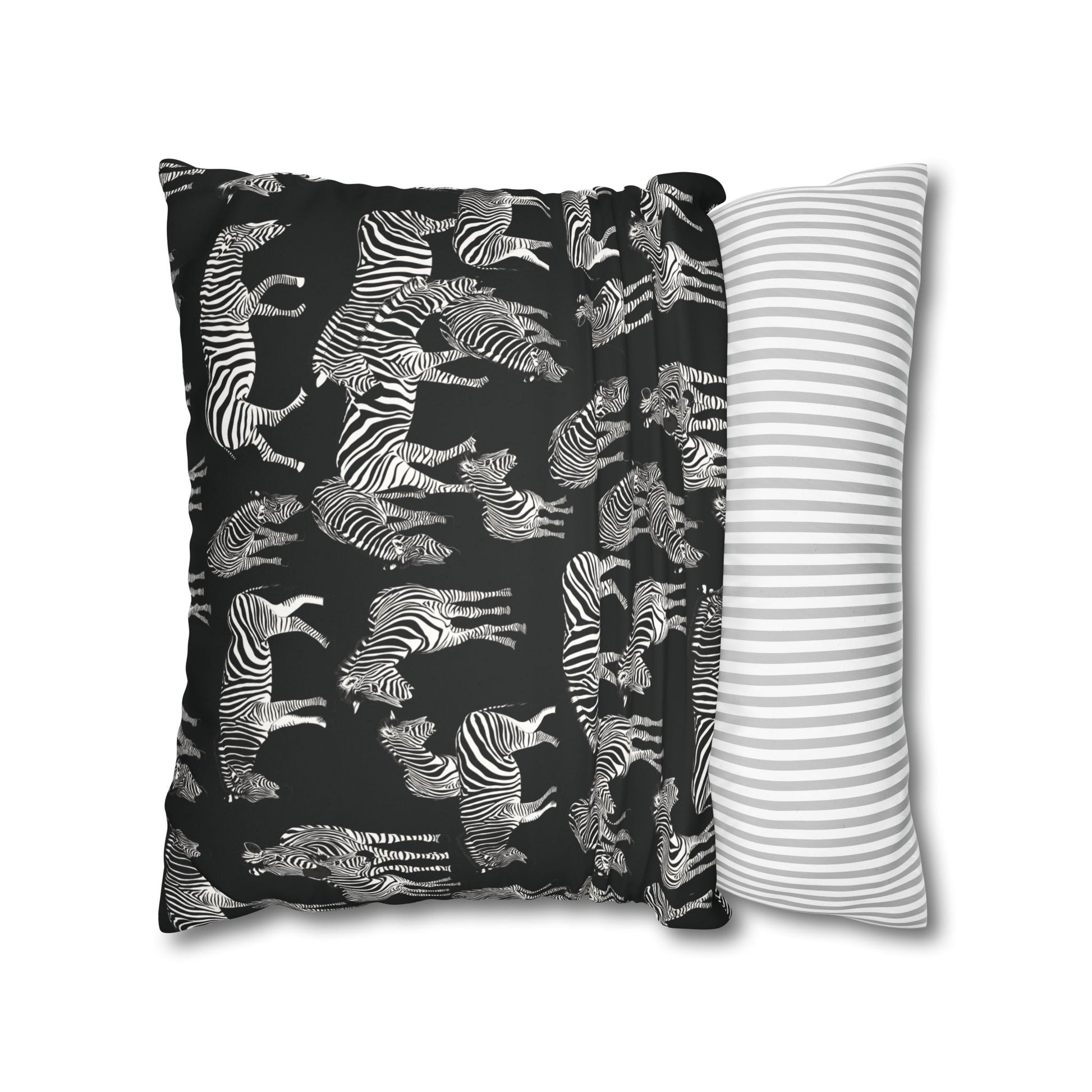 Zebra Herd Lux Faux Suede Throw Pillow Cover – 18" x 18" & 20" x 20" (Black)