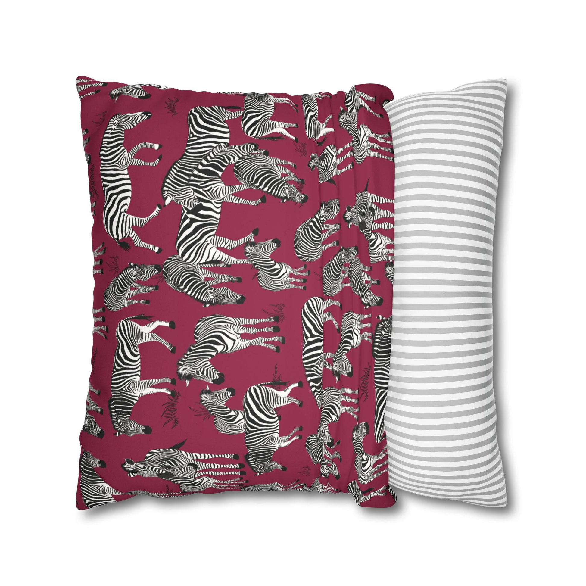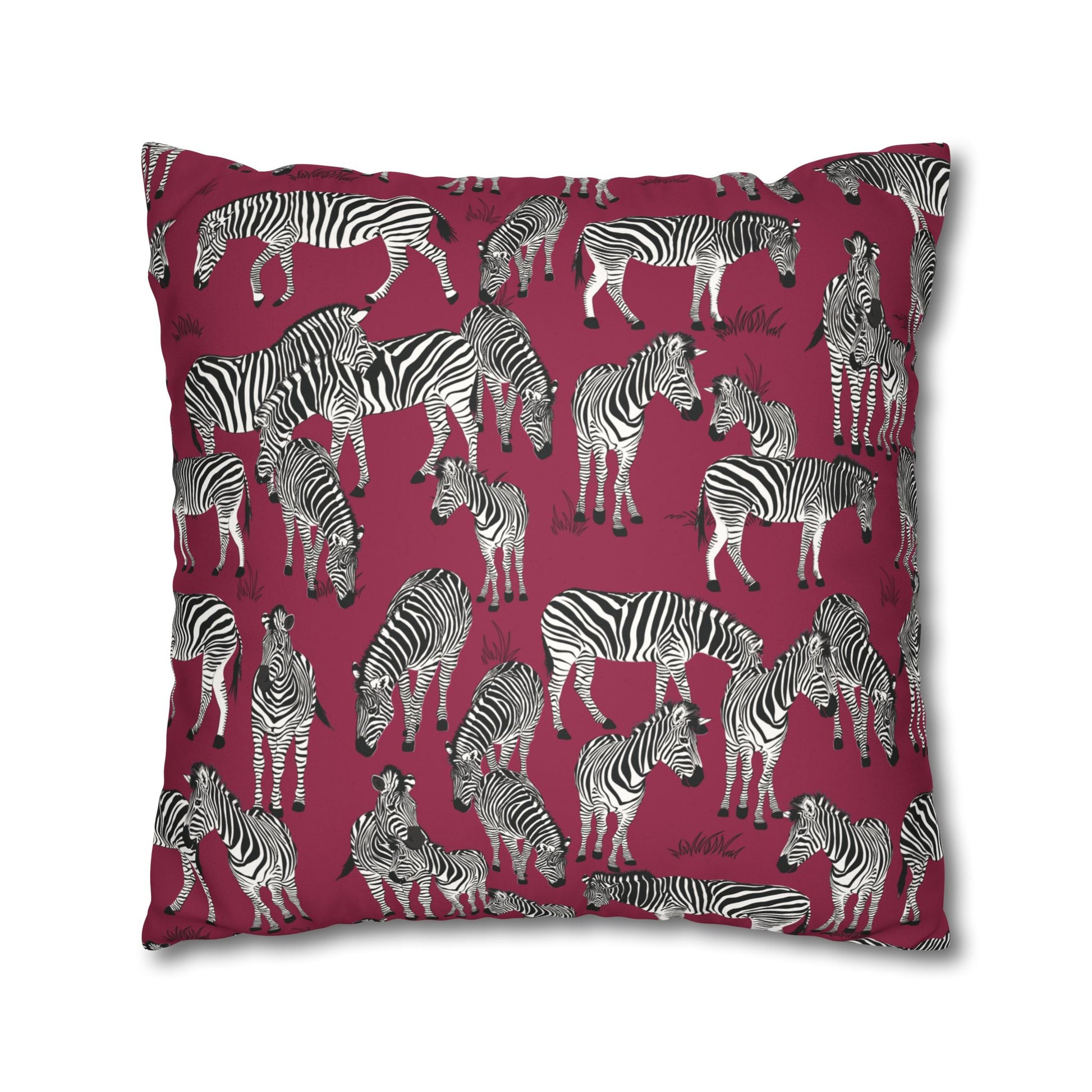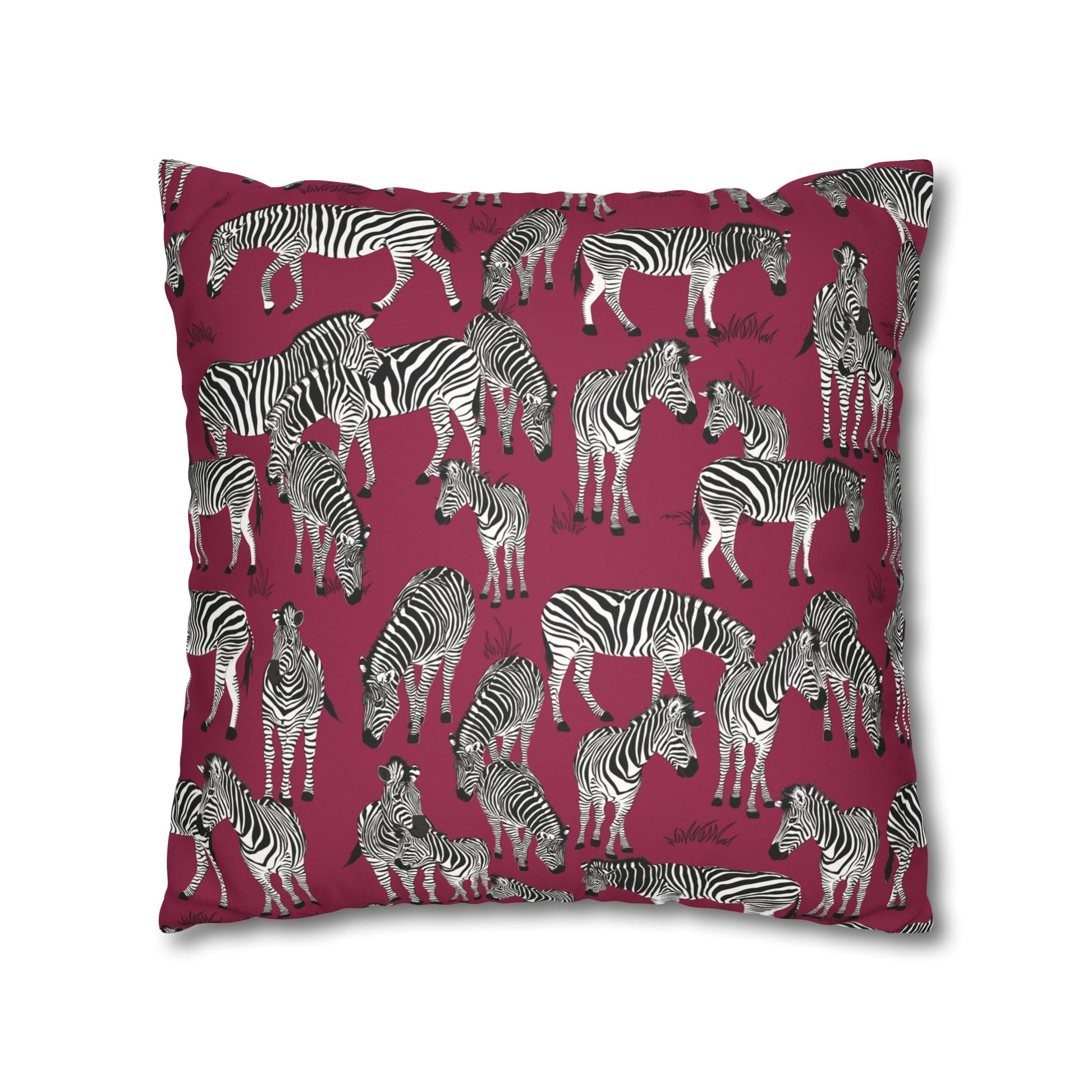 Zebra Herd Lux Faux Suede Throw Pillow Cover – 18" x 18" & 20" x 20" (Crimson Berry)