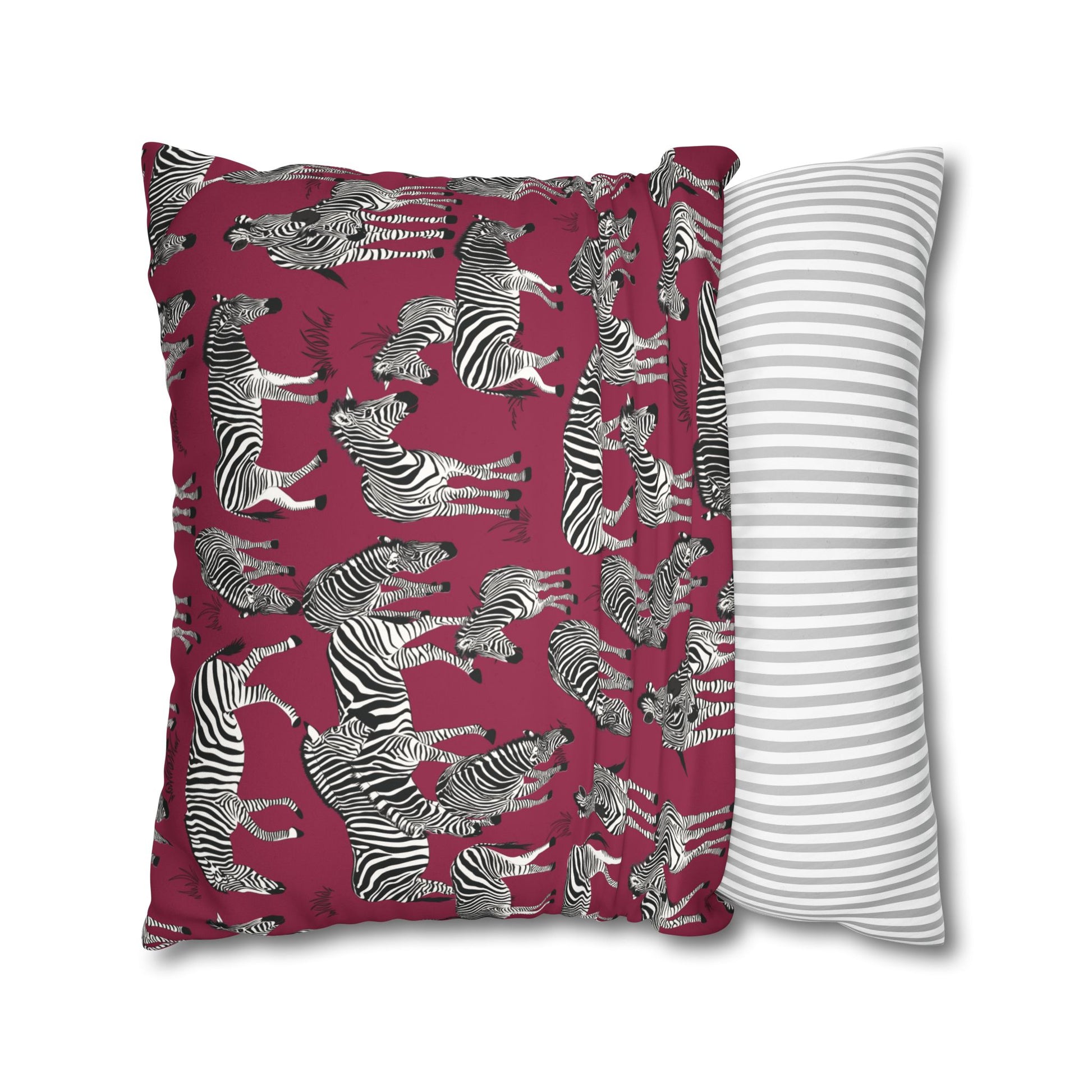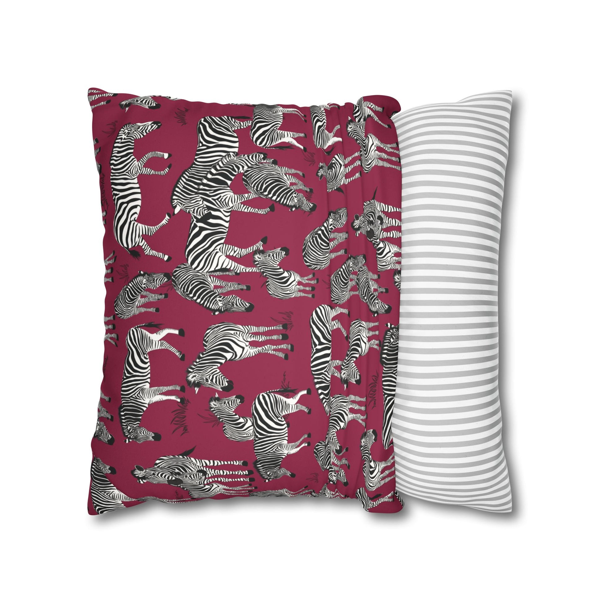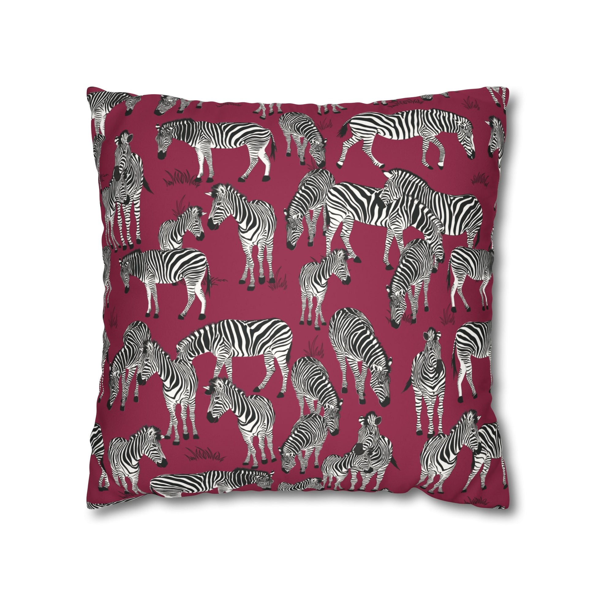 Zebra Herd Lux Faux Suede Throw Pillow Cover – 18" x 18" & 20" x 20" (Crimson Berry)