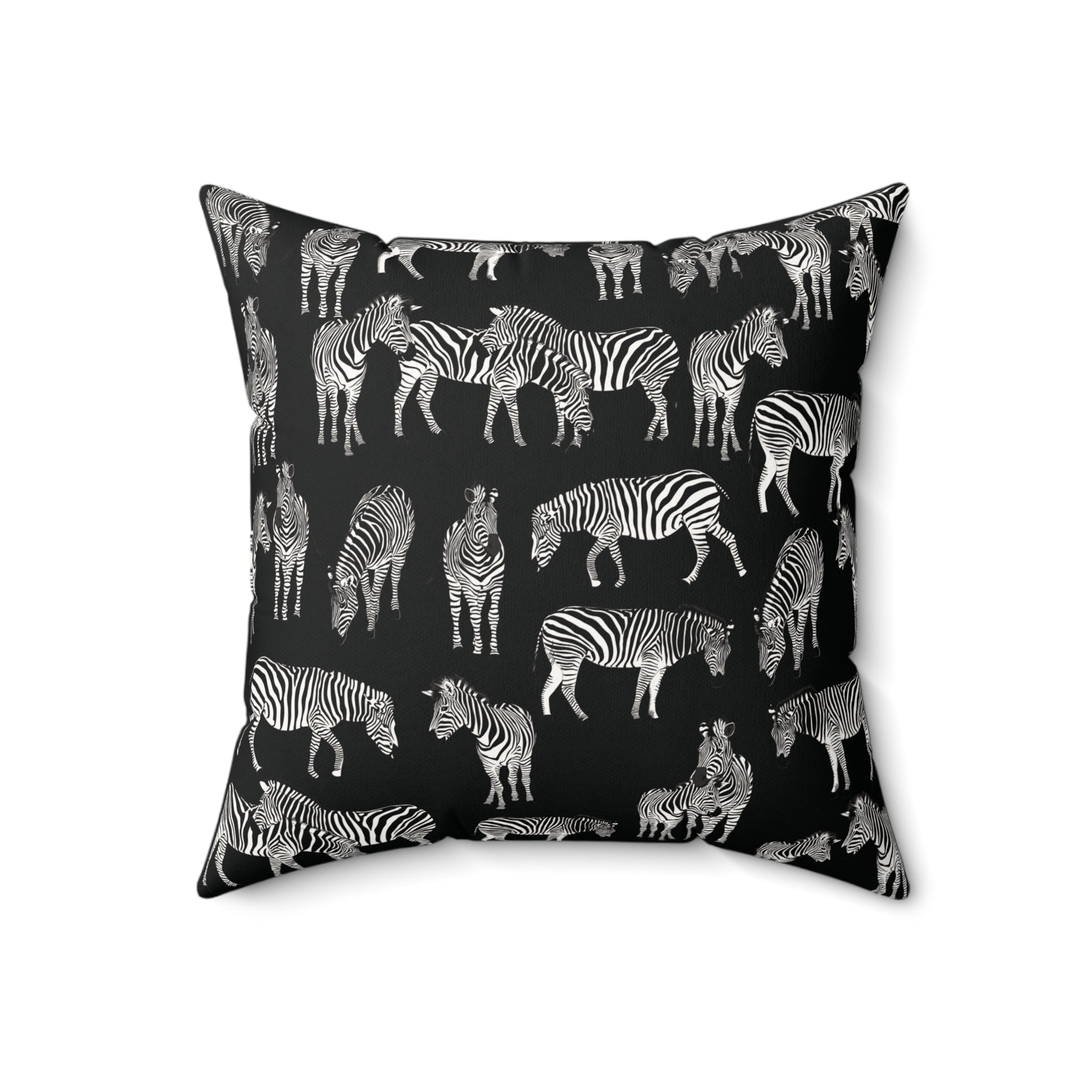 Zebra Herd Print Lux Faux Suede Throw Pillow with Insert - 18 x 18" (Black)
