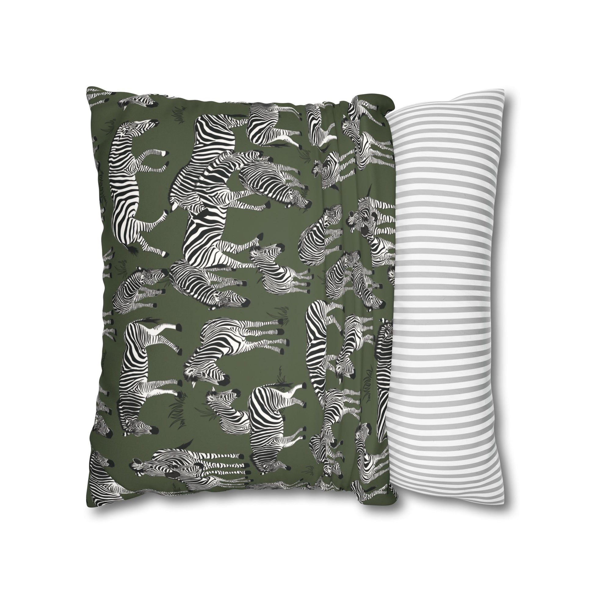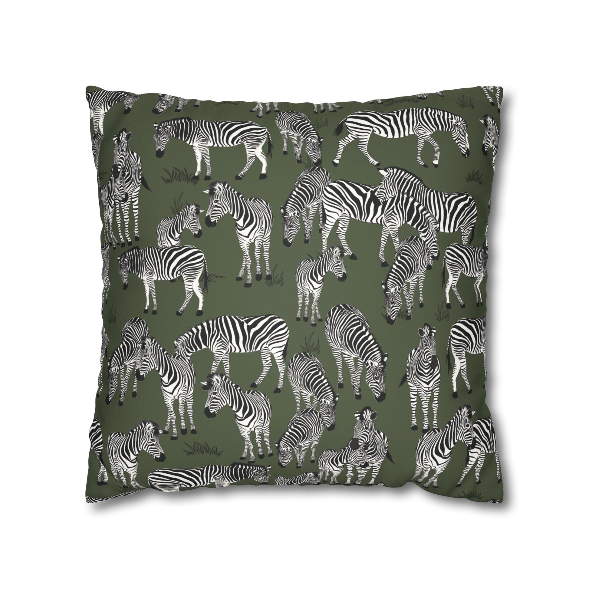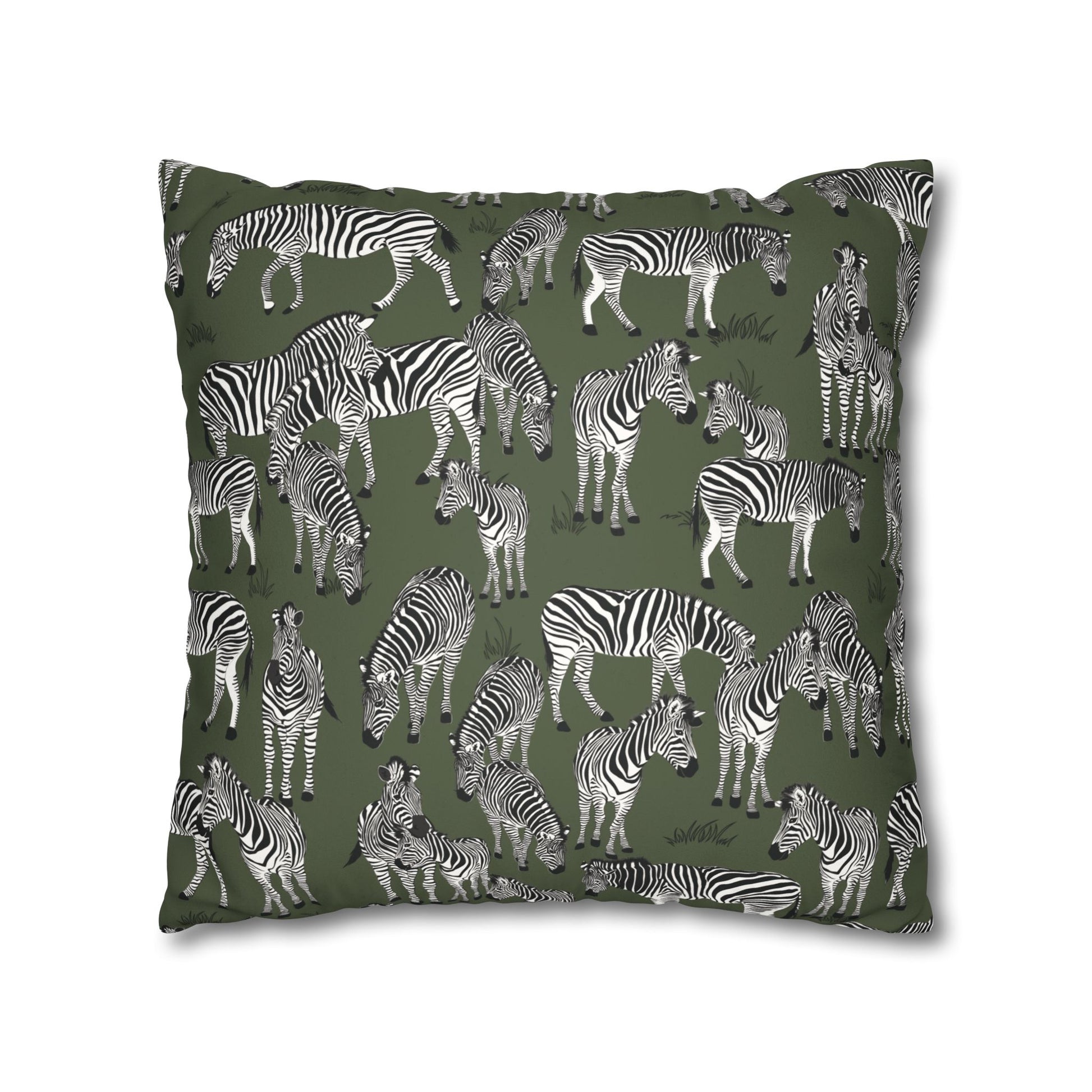 Zebra Herd Lux Faux Suede Throw Pillow Cover – 18" x 18" & 20" x 20" (Moss)