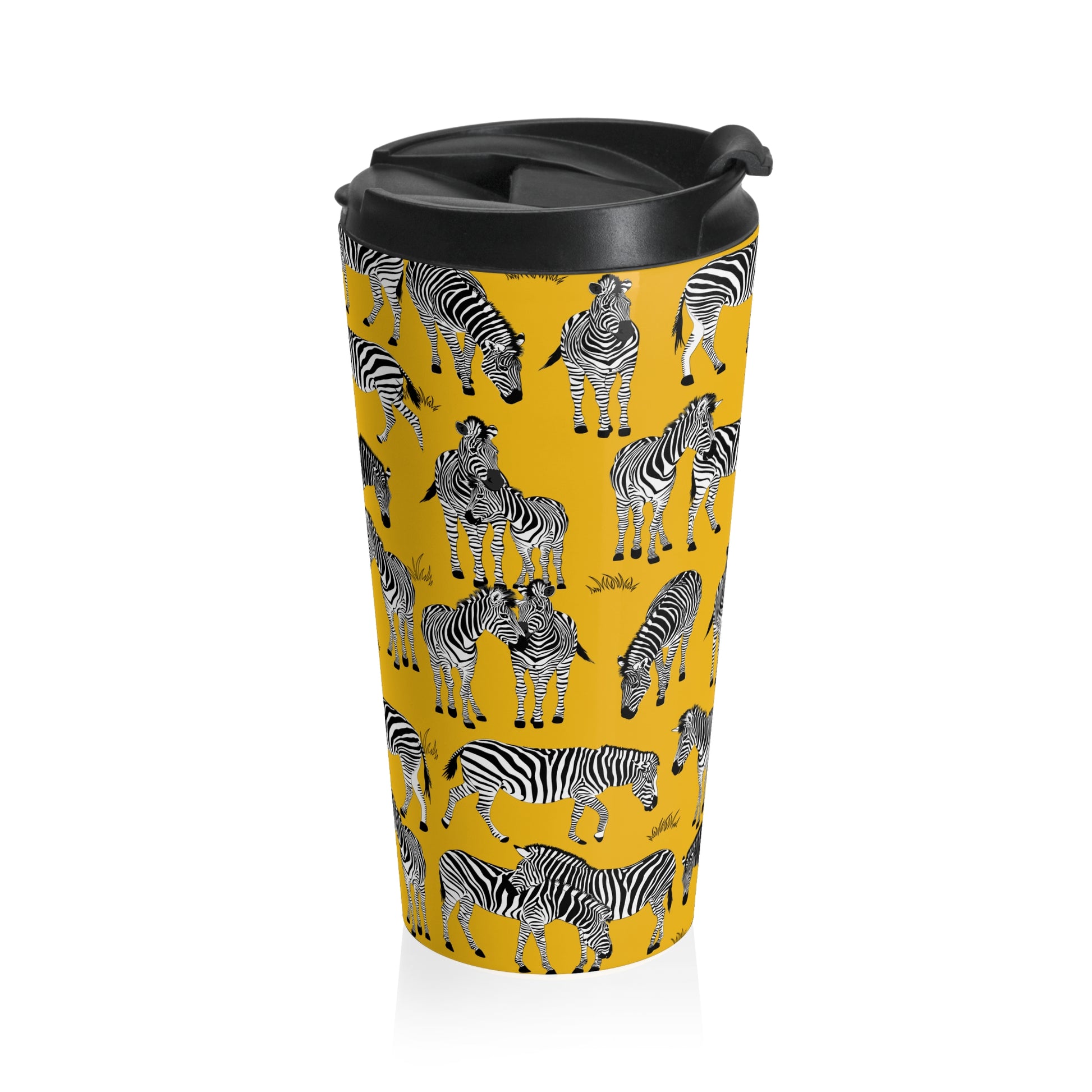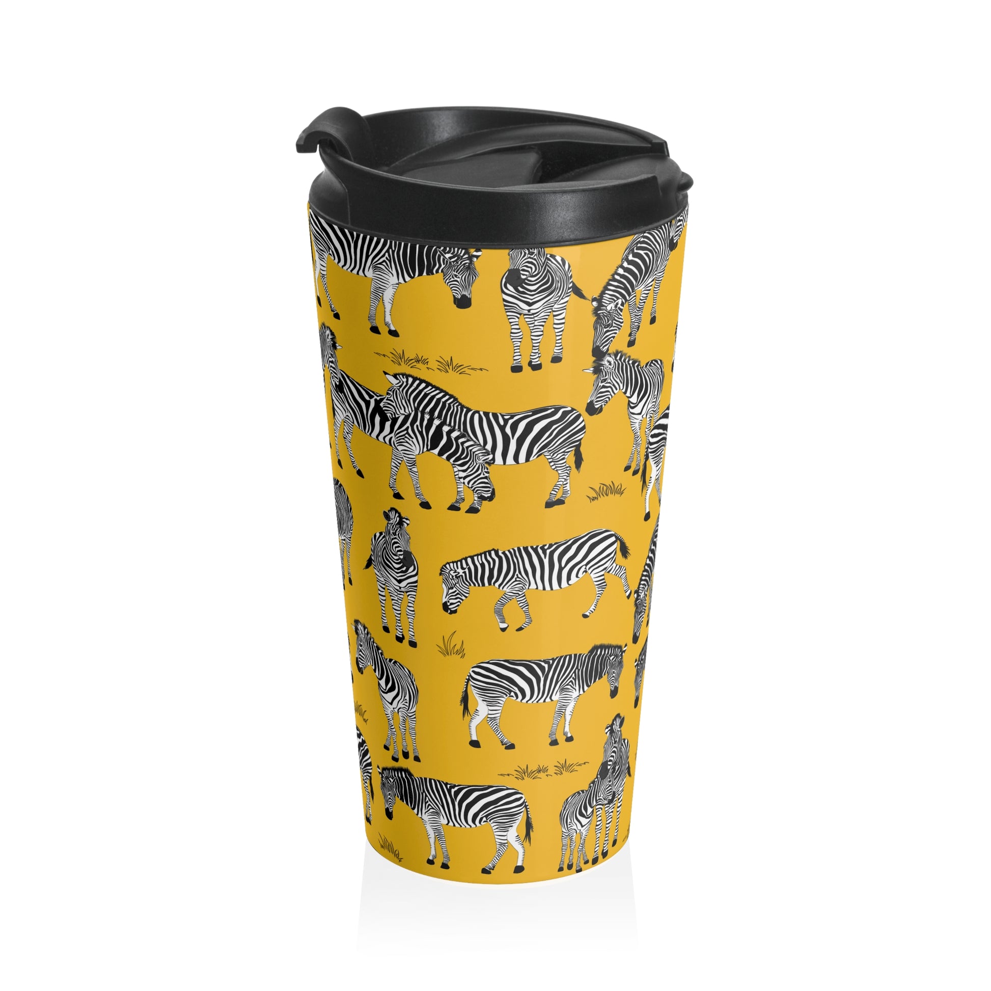 Zebra Pattern Stainless Steel Travel Mug (Yellow) | Stylish Travel Tumbler | Perfect Gift for Animal Lovers, Nature Enthusiasts, or Travel Junkies