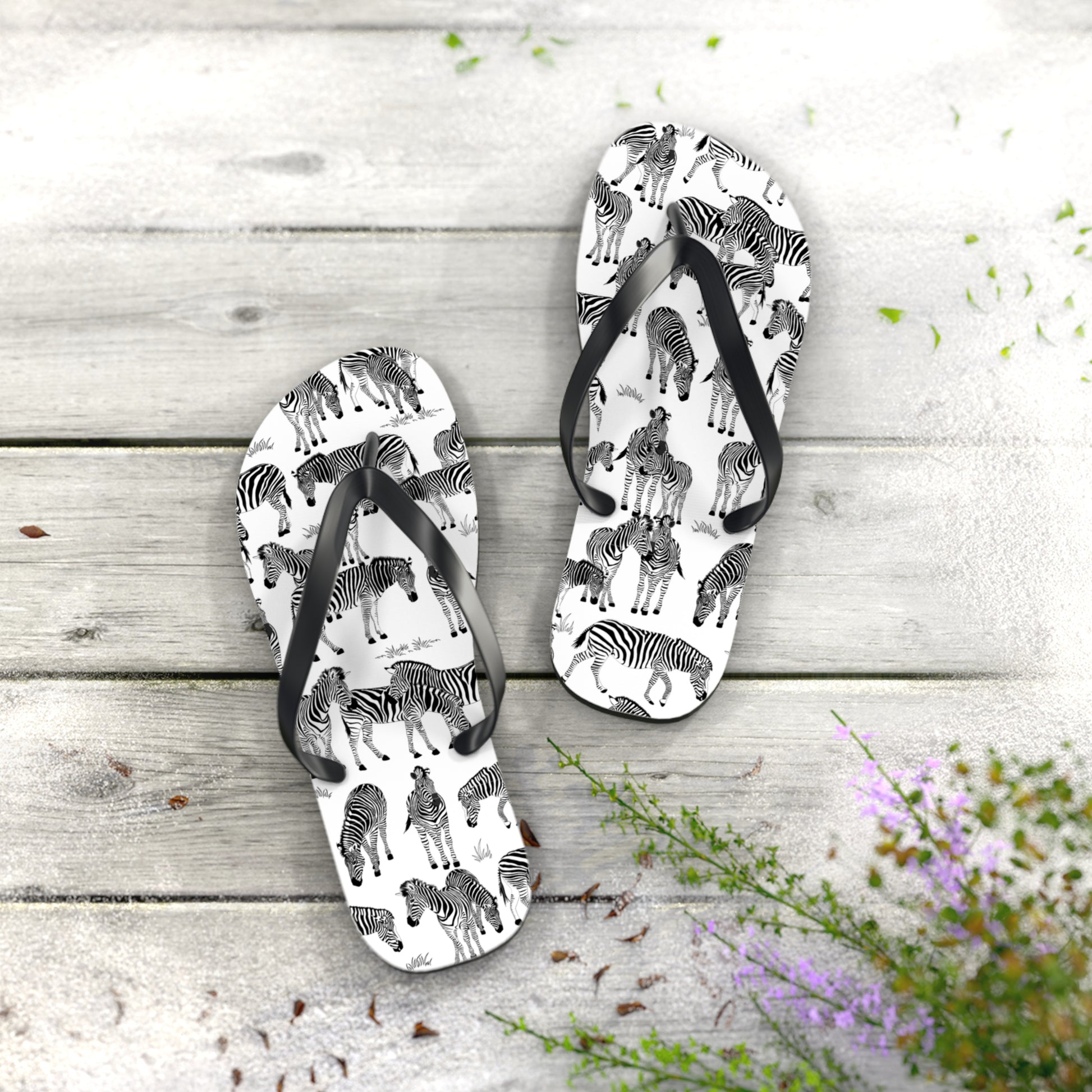 Zebra Print Flip Flops (White), Summer Sandals, Beach Footwear, Vacation Essentials, Gift for Nature Lovers, Cute Outdoor Wear